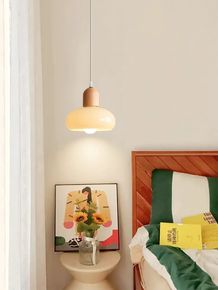 Moderno simple madera crema viento pequeño lámpara de mesa de comedor lámpara de escritorio habitaciones residenciales cabezal de cama lámpara de vidrio de madera sólida