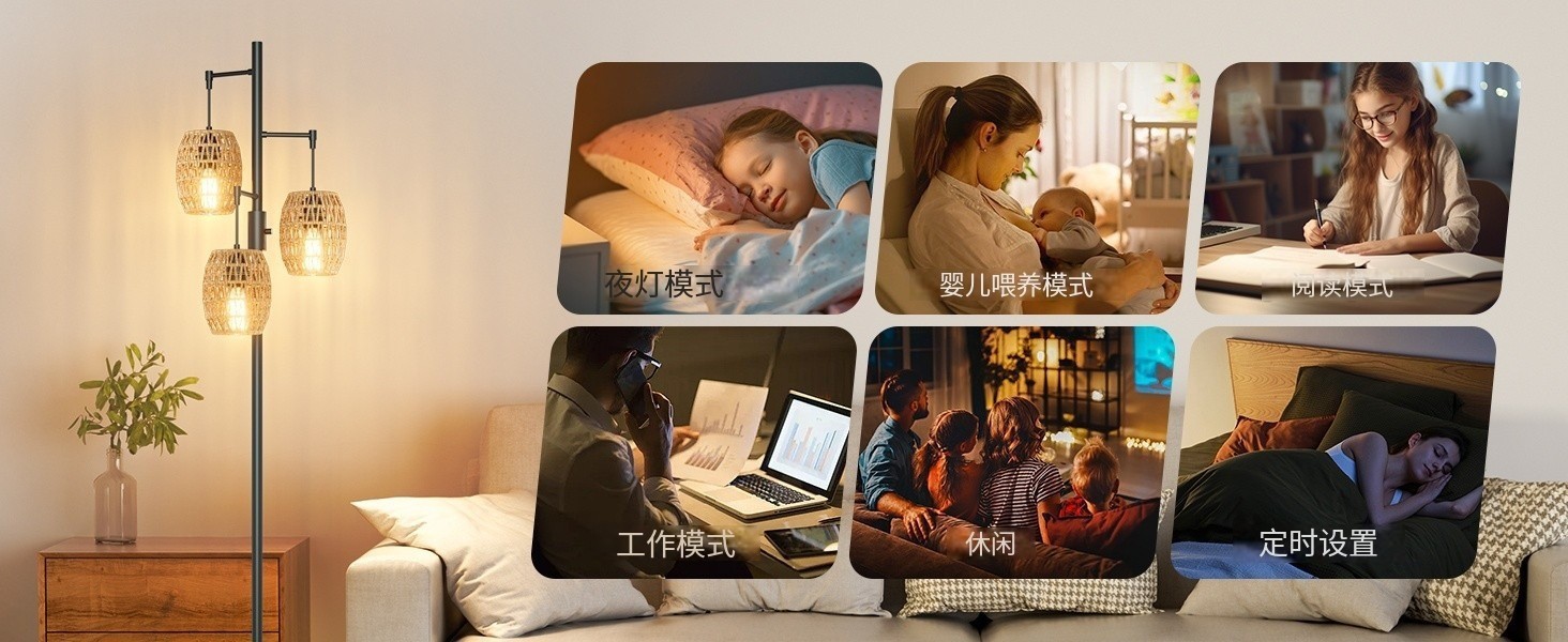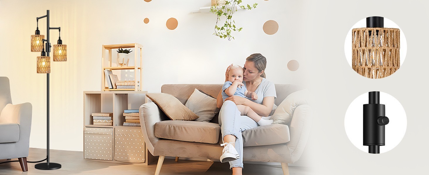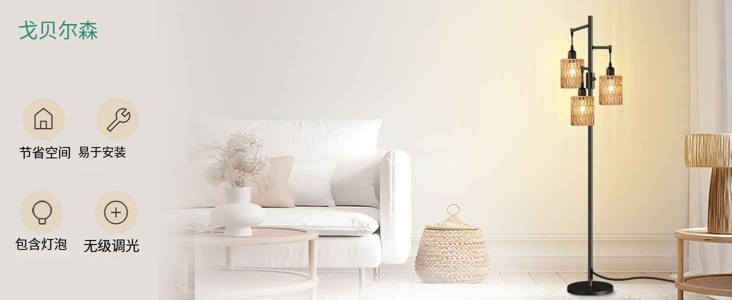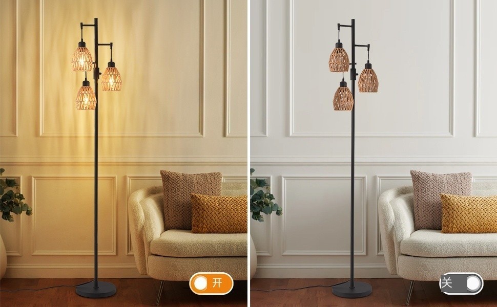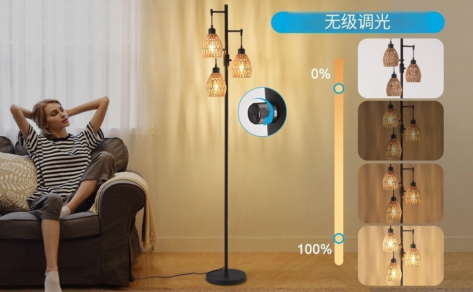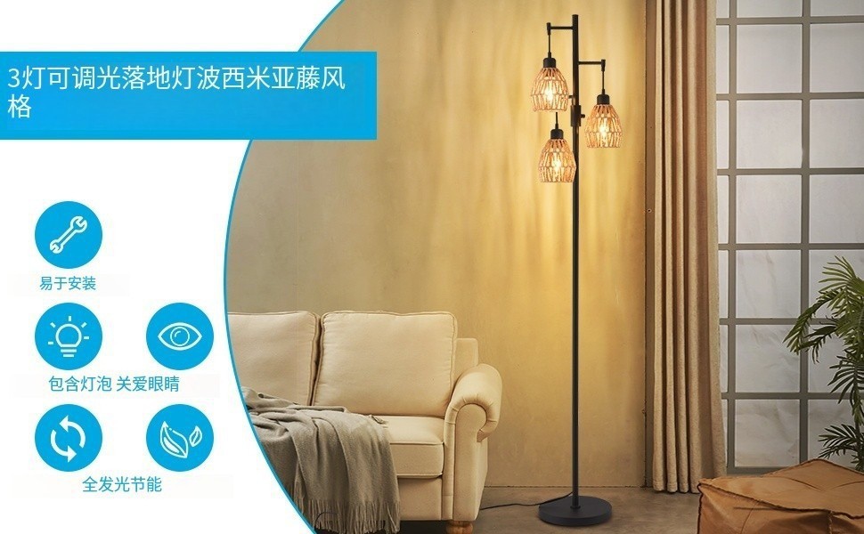 Transfronterizo Amazon estilo retrógrado estilo rústico americano jaula de pájaros de hierro forjado tres cabezas lámpara de piso sala de estar dormitorio