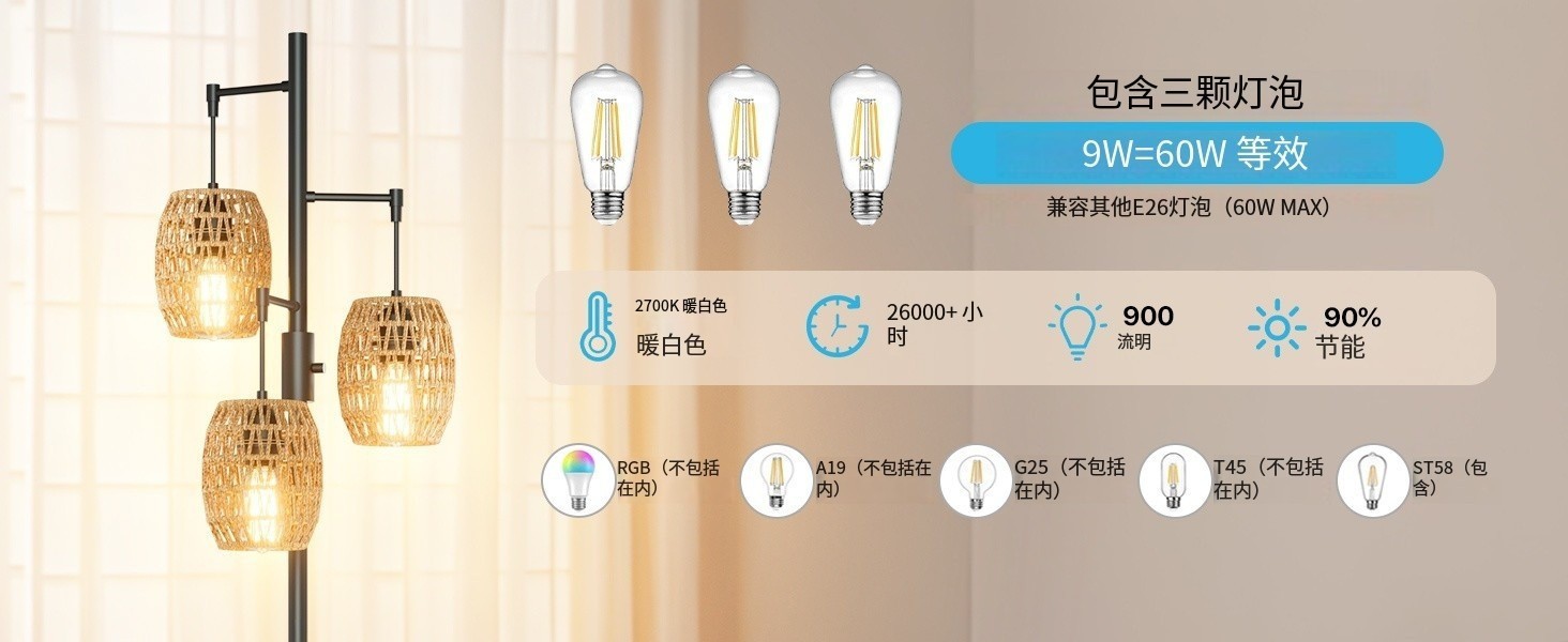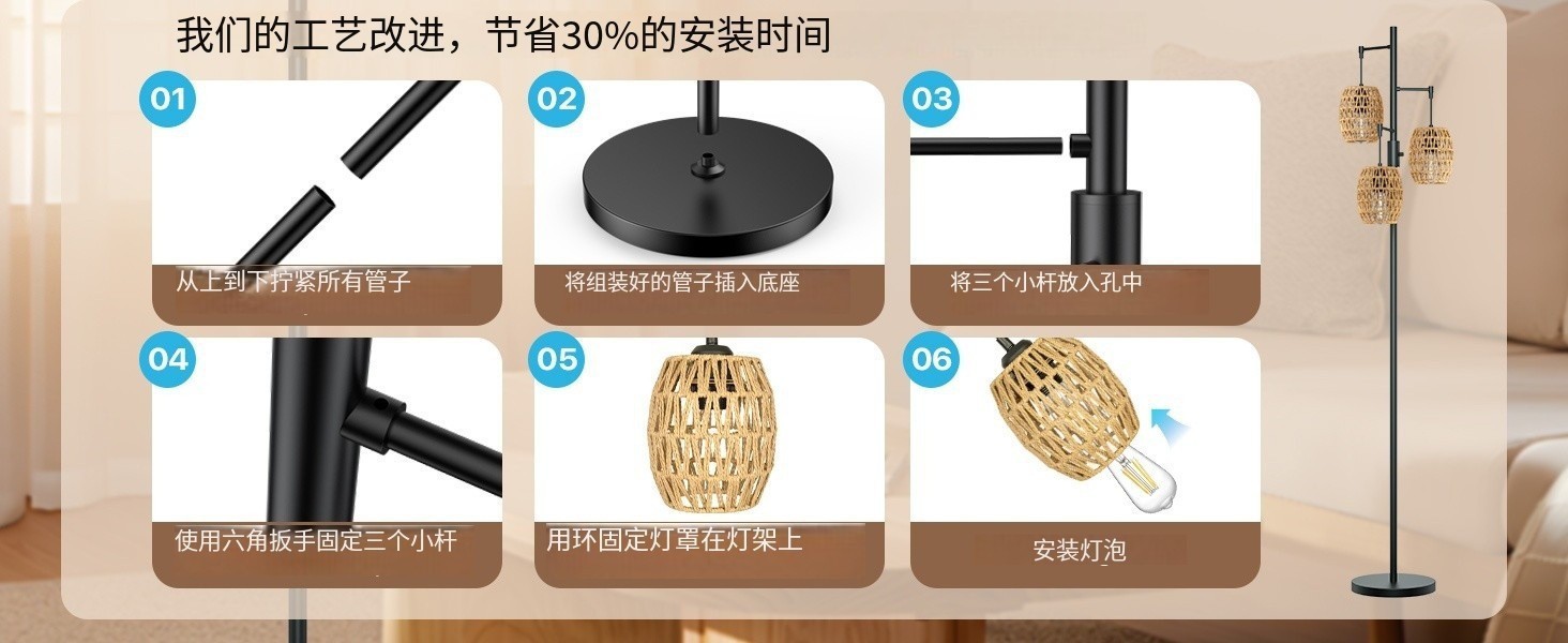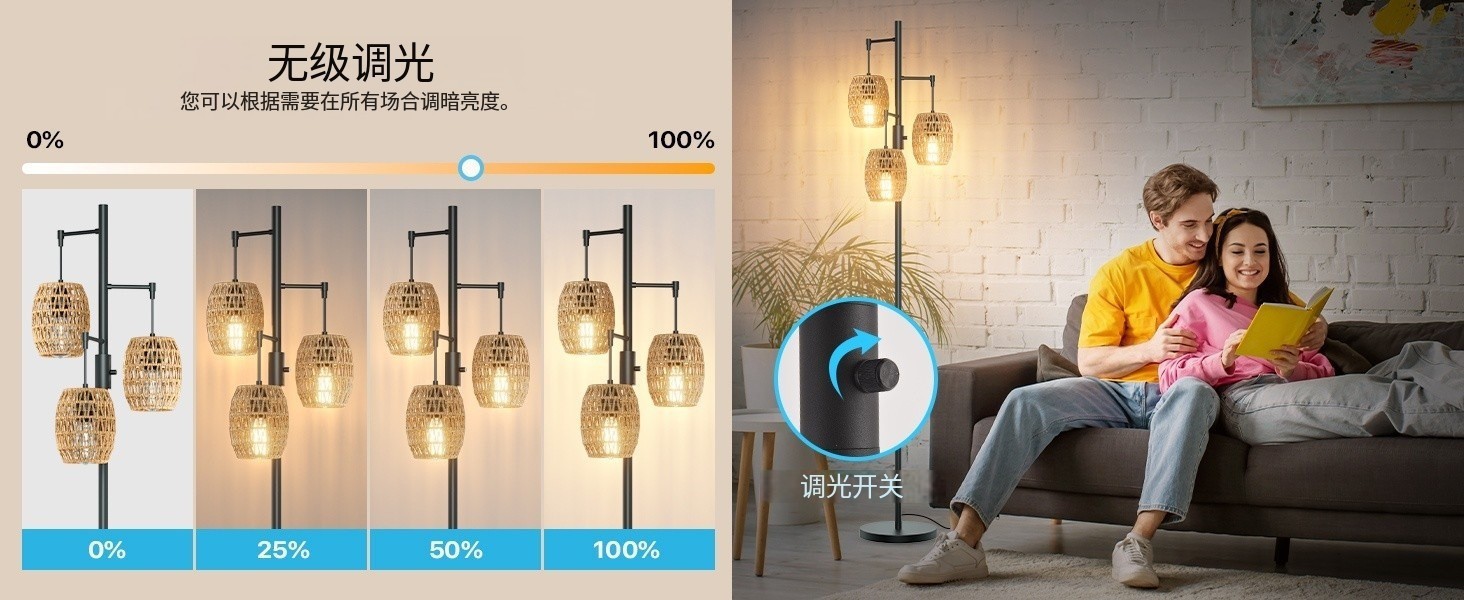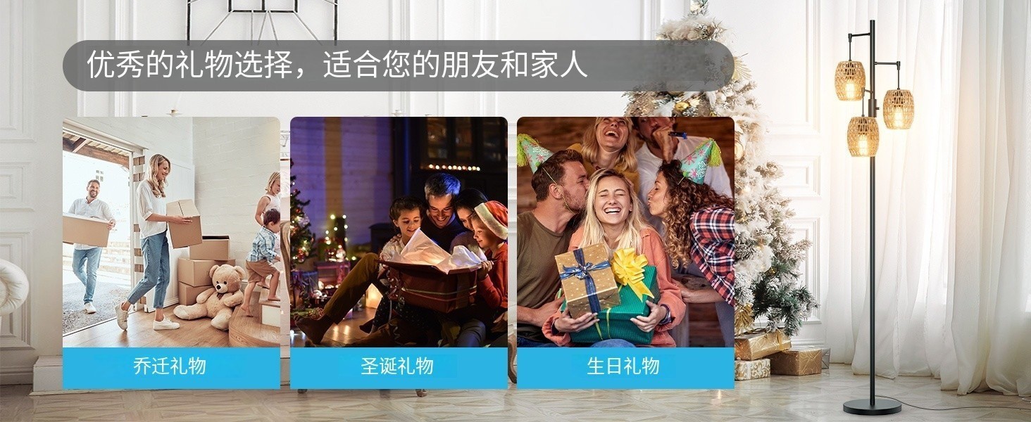 Transfronterizo Amazon estilo retrógrado estilo rústico americano jaula de pájaros de hierro forjado tres cabezas lámpara de piso sala de estar dormitorio