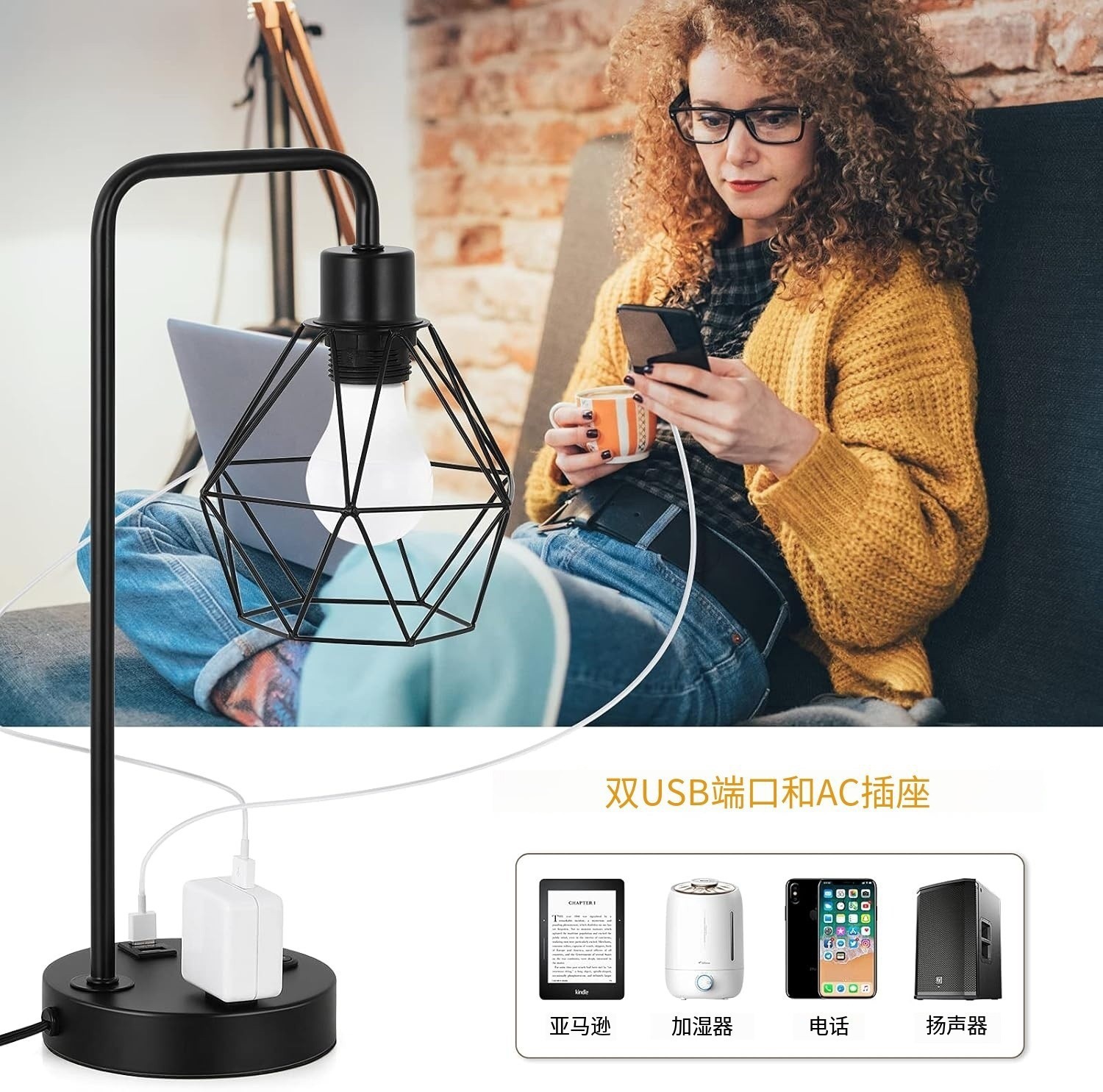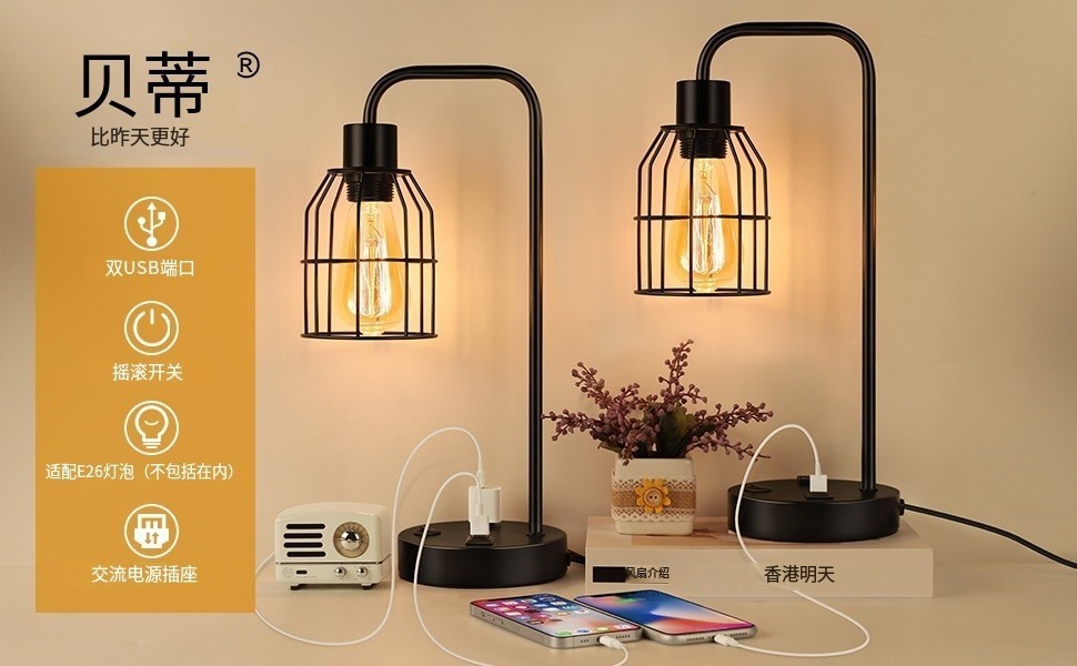 Transfronterizo Zhongshan lámparas dormitorio cabezal de cama para niños estudio atenuación táctil doble USB carga lámpara de escritorio atenuable
