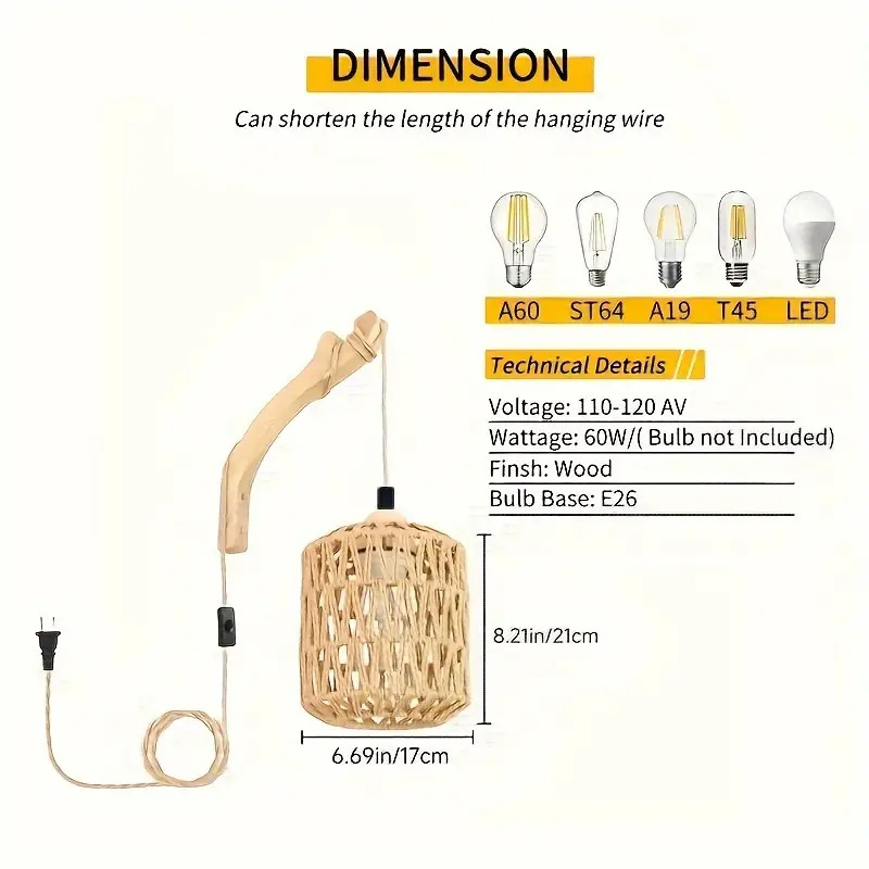 Retro estilo japonés cama de bambú lámpara de pared de cabeza comedor lámpara de vidana dormitorio de madera granja rural interior lámpara de pared de fondo