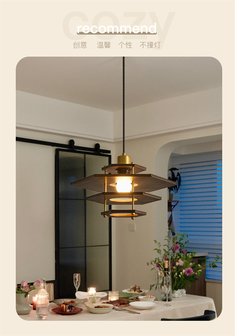 Platillo volador de madera maciza estilo medieval color nuez retro bar mesa de comedor hotel de alojamiento residencial sala de té lámparas candelarias
