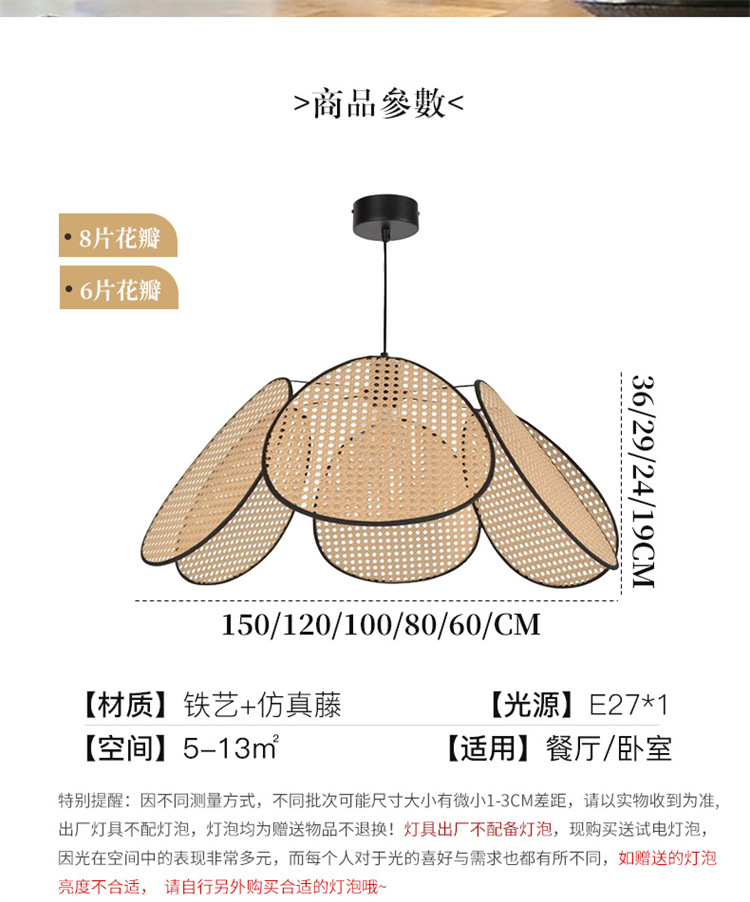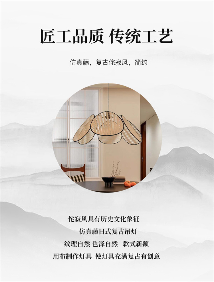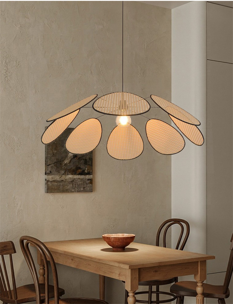Nuevo estilo chino silencioso Zen sala de té lámparas de restaurante personalidad creativa estilo francés medieval crema de viento trenzado lámpara de pétalos