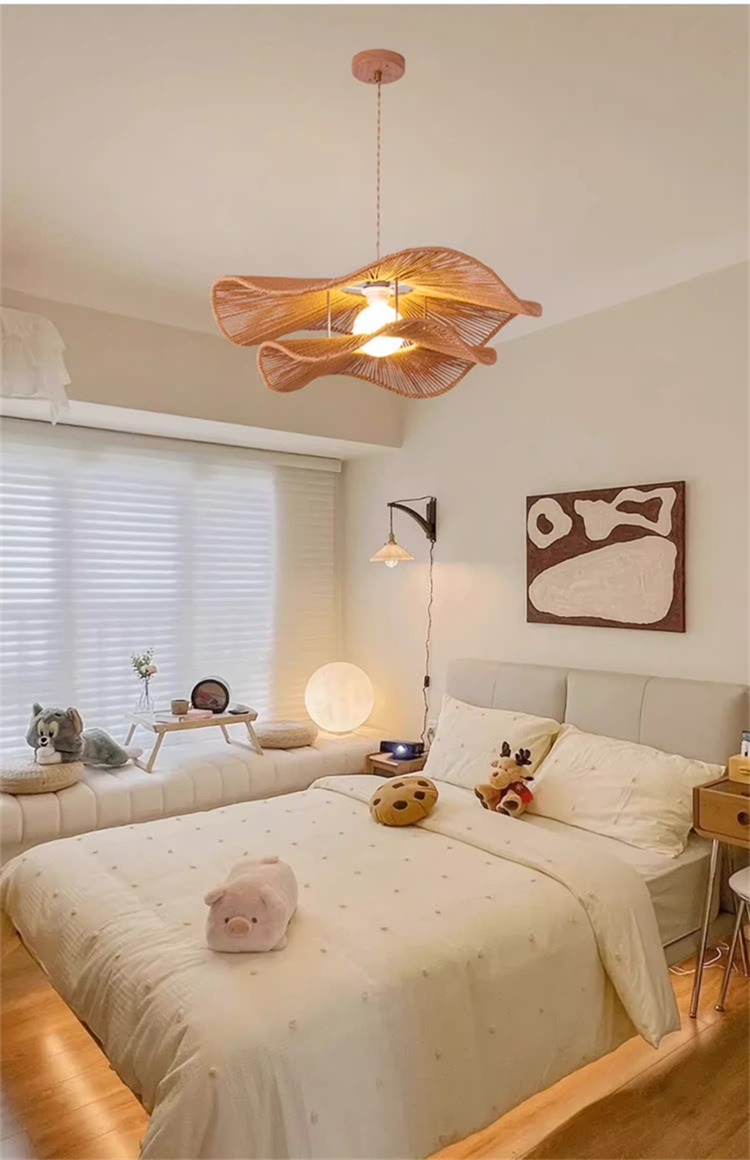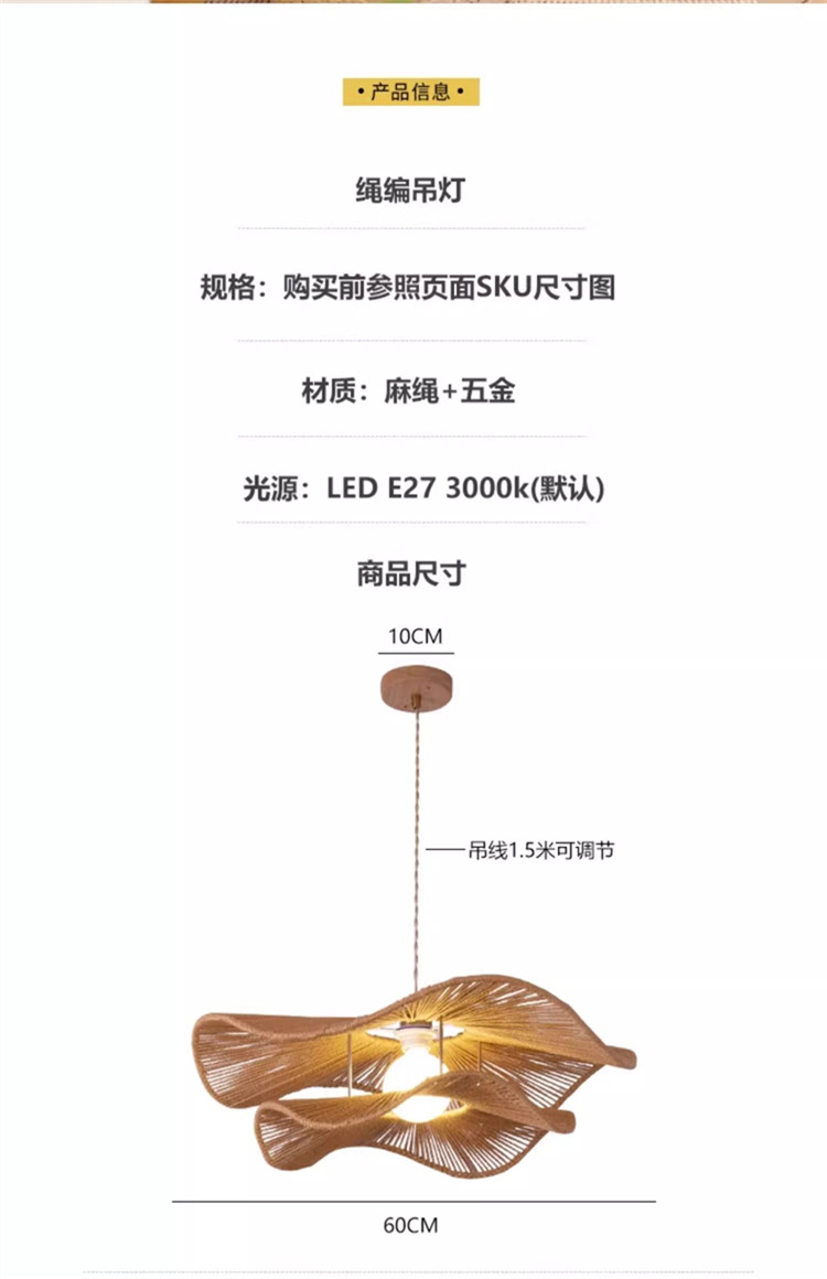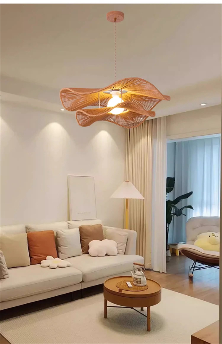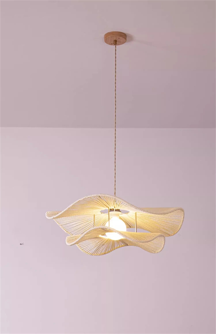 Estilo japonés de estilo tranquilo viento crema viento retro lámpara candelabro sala de estar dormitorio lámpara principal restaurante nórdico casa de té lámpara de cuerda de cáñamo