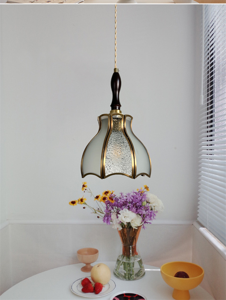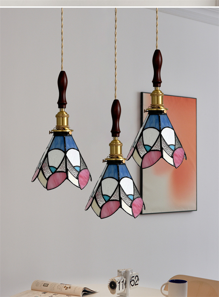 Lámpara de soldadura hecha a mano de latón retro estilo americano cabecera pasillo restaurante café vidrio de colores pequeño candelier