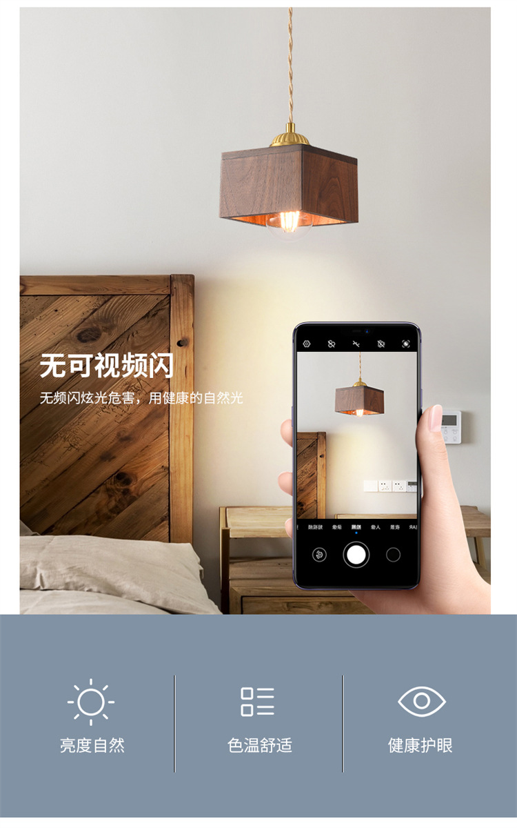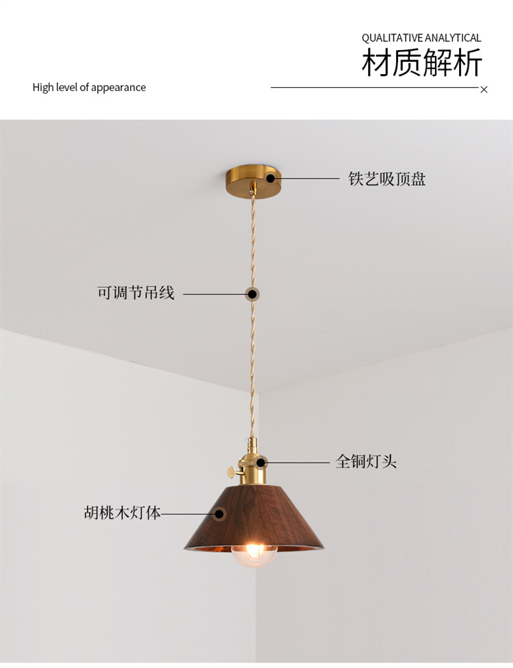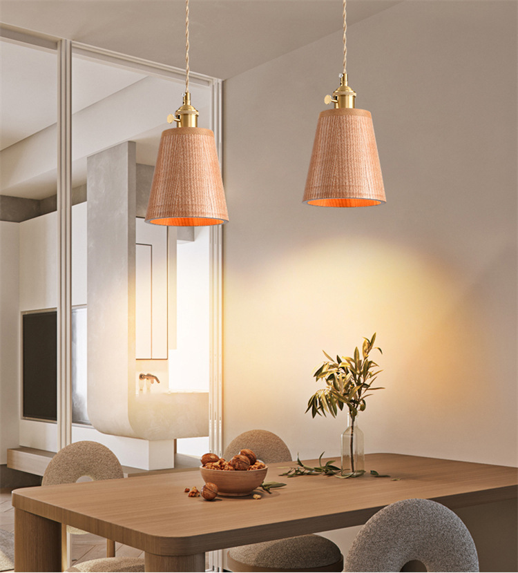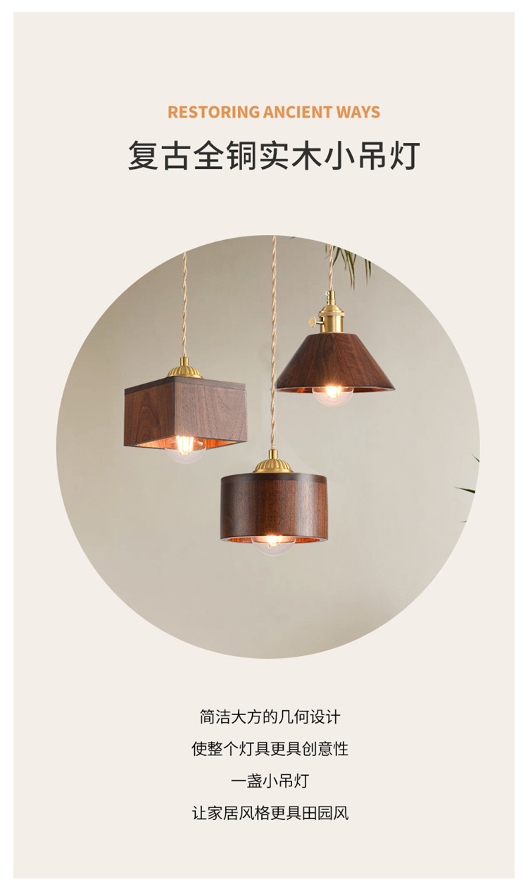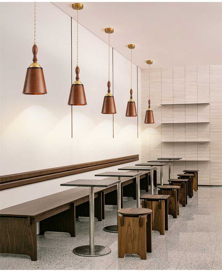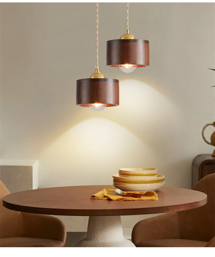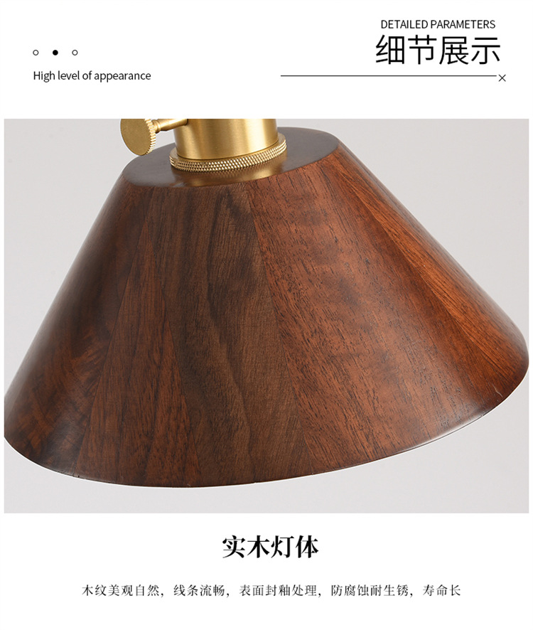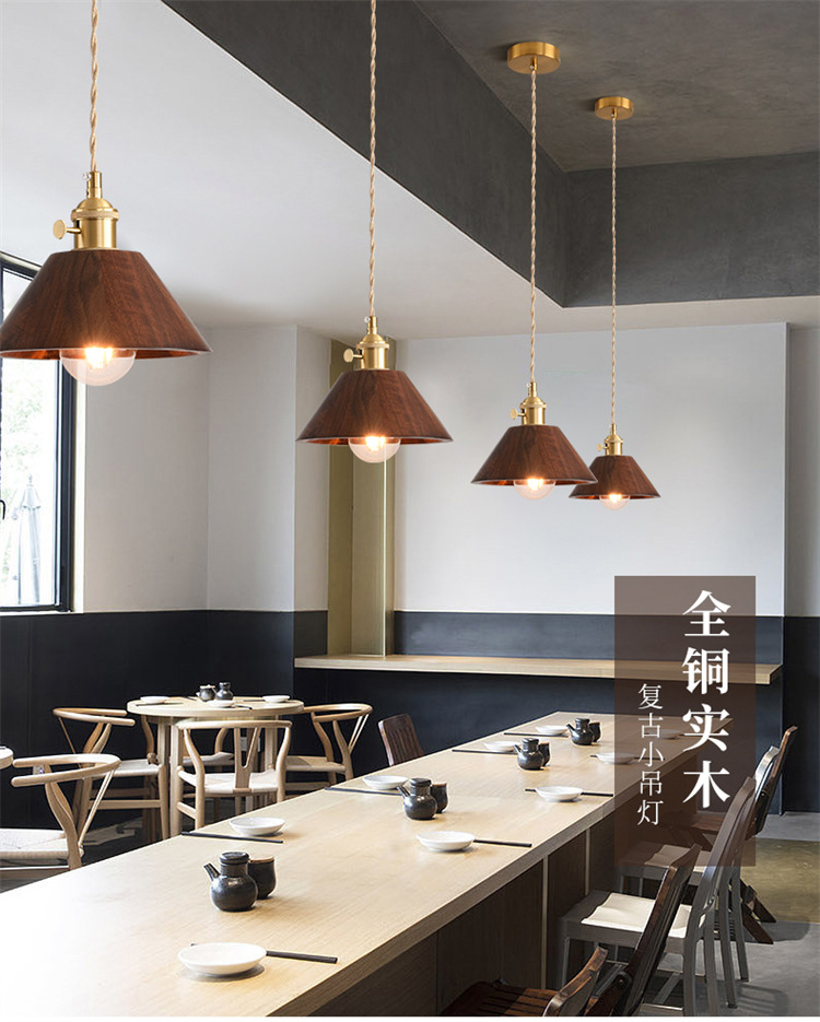 Lámpara de cabecera del dormitorio lujoso nuevo retro creativo bronce color nuez bar de madera maciza comedor de línea larga pequeña lámpara de cama