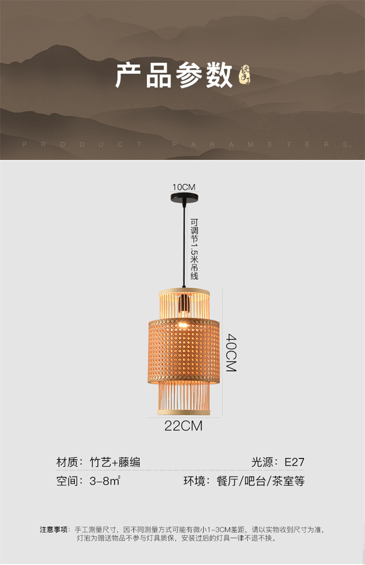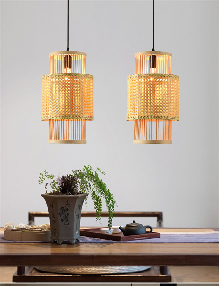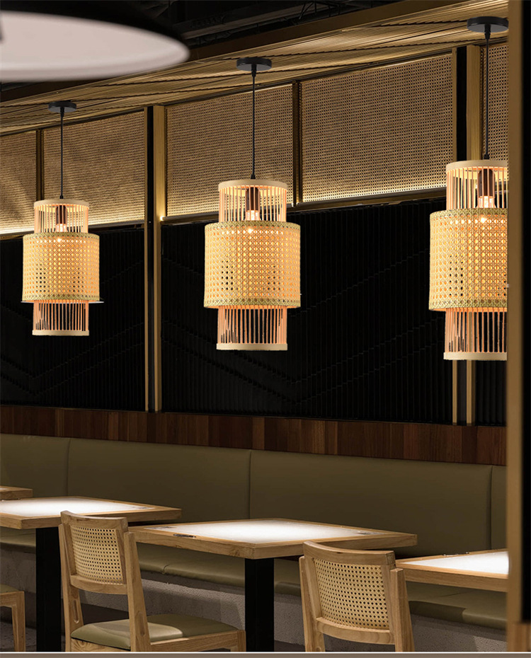 Nuevo restaurante chino de bambú trenzado lámpara candelabro Zen sala de té residencial lámpara de arte de bambú hotel retro tienda de olla caliente lámpara trenzada de caña