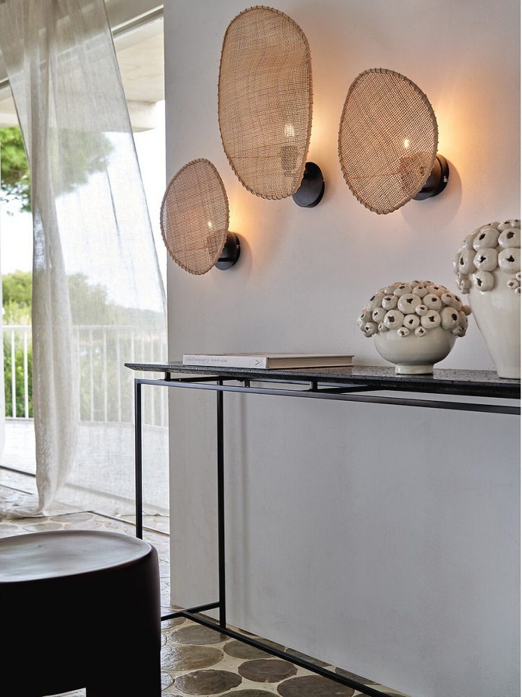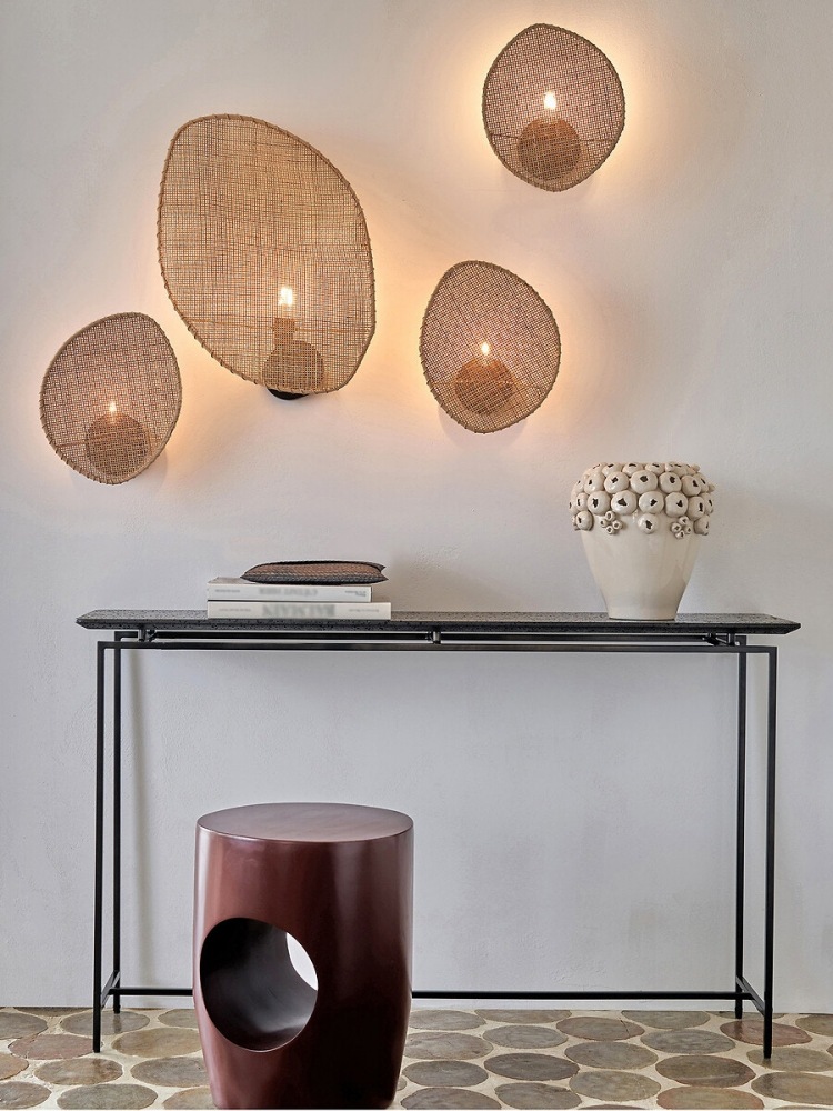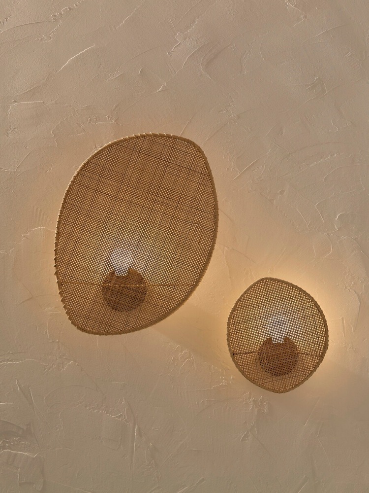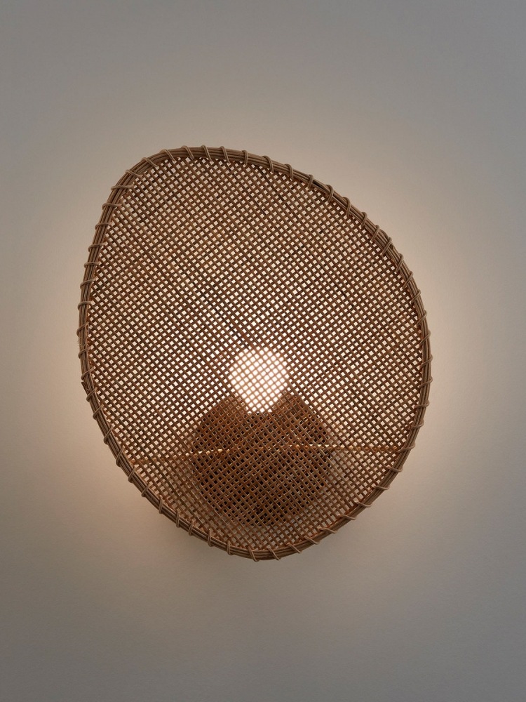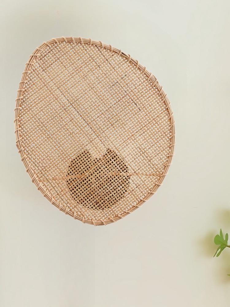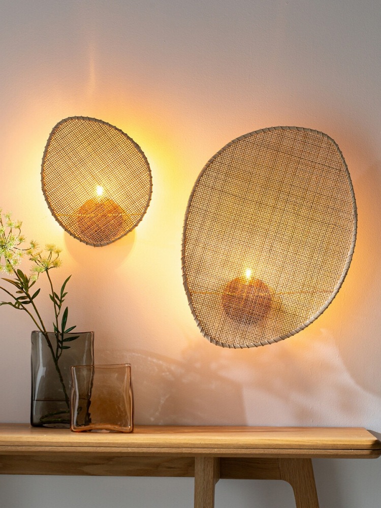 Lámpara de pared artesanal de caña de estilo japonés silenciosa en el sudeste asiático clásico ins estudio residencial sala de té iluminación artística en forma de ventilador
