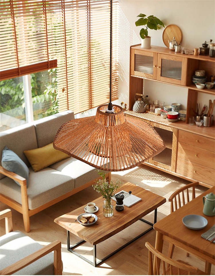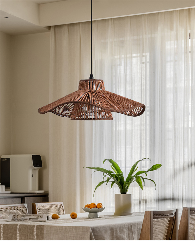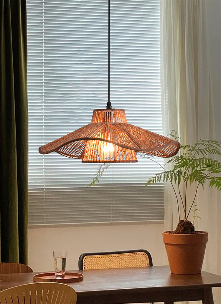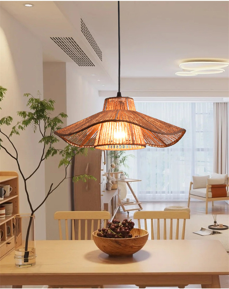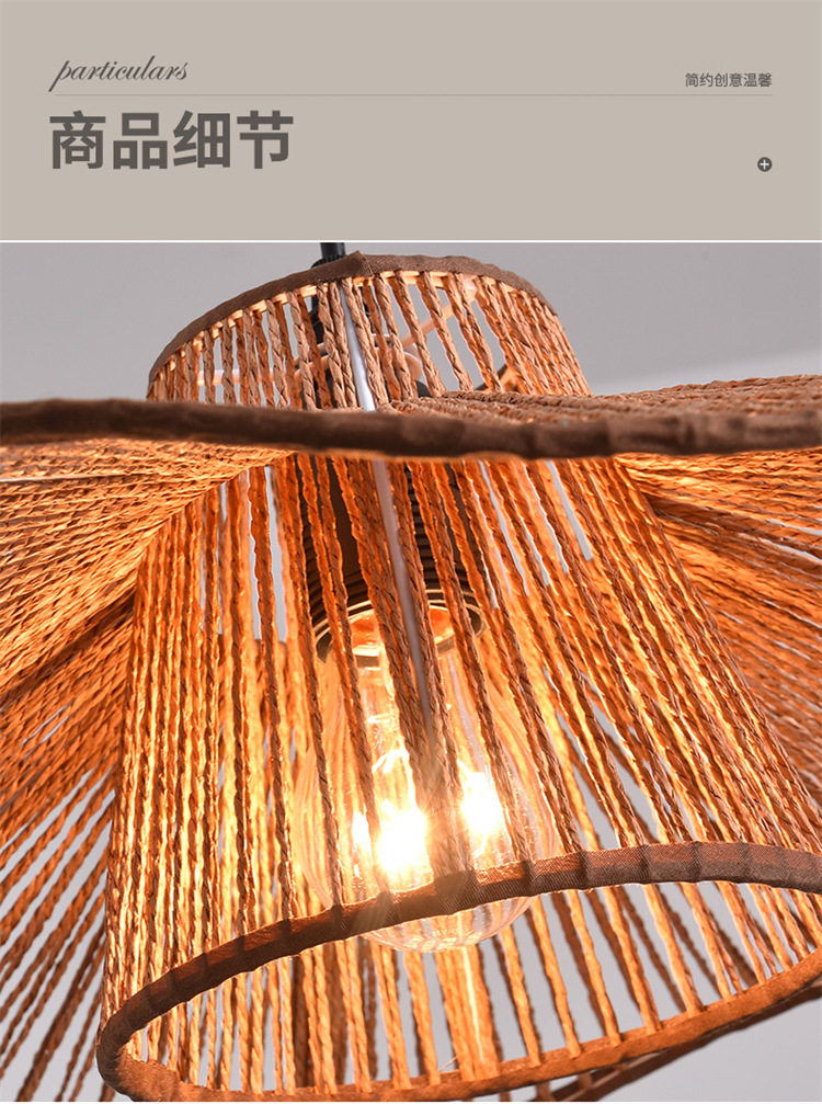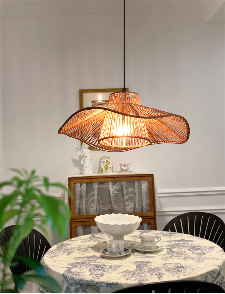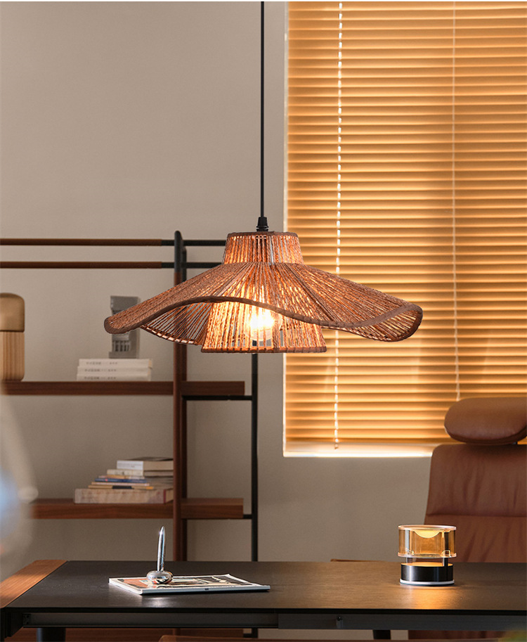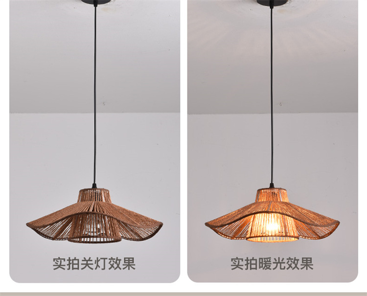 Lámpara Colgante de Estilo Japonés Wabi-Sabi Zen para Salón de Té, Lámpara Colgante de Paja de Cáñamo Hecha a Mano, Lámpara Colgante de Arte de Hoja de Loto para Restaurante