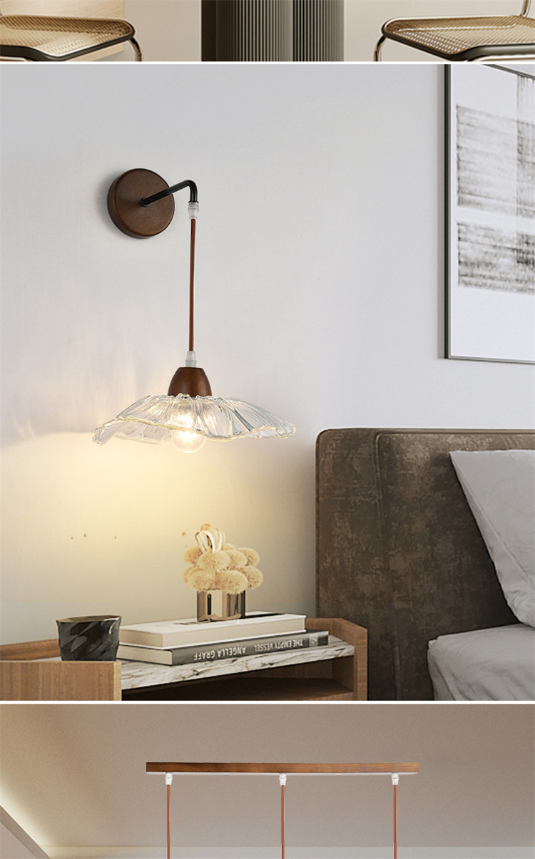 Estilo de registro comedor araña moderna minimalista estilo japonés madera bar comedor lámpara de la habitación retro hoja de loto cama lámpara de pared