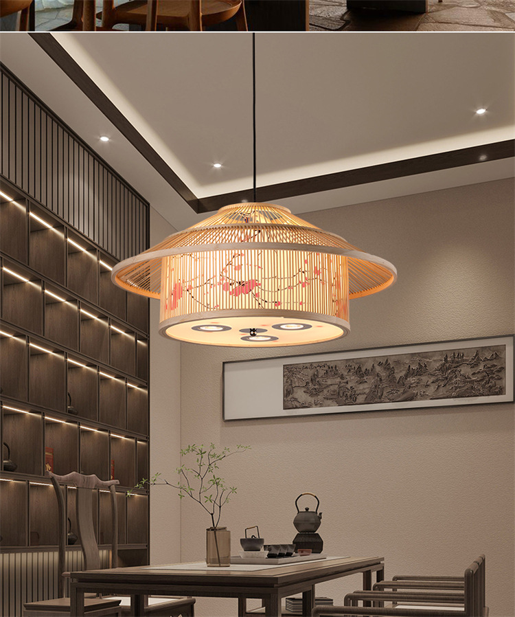 Moderno restaurante chino araña caja restaurante B & B té tatami olla caliente restaurante bambú tejido con lámparas de foco
