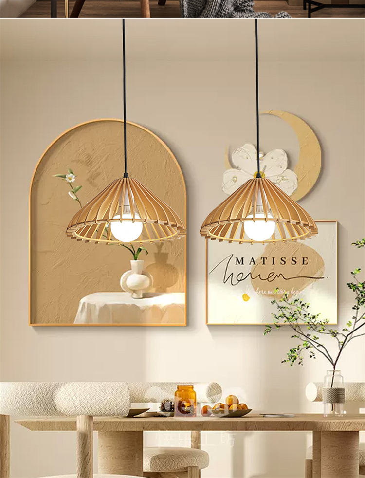 Lámpara colgante pequeña de estilo nórdico europeo, estilo chino nuevo, de madera maciza, para sala de estar, comedor, estudio, bar, salón de té, dormitorio