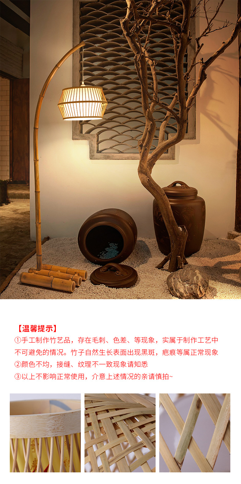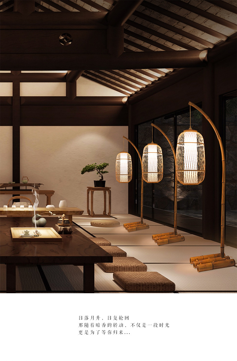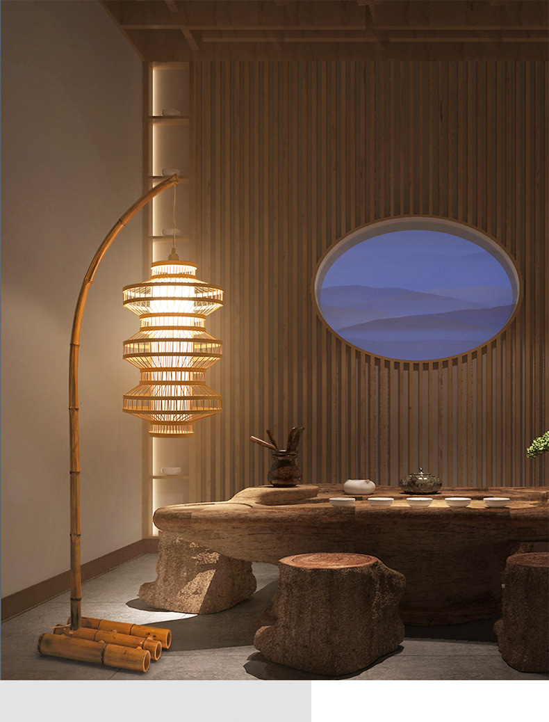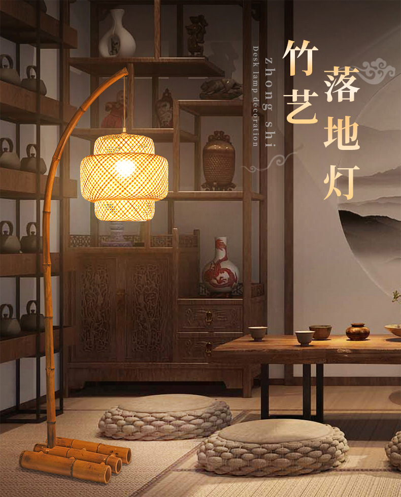 Nueva atmósfera de sala de estar de estilo chino, dormitorio Zen, restaurante de hotel, salón de té B&B de estilo japonés, lámpara de pie antigua medieval wabi-sabi