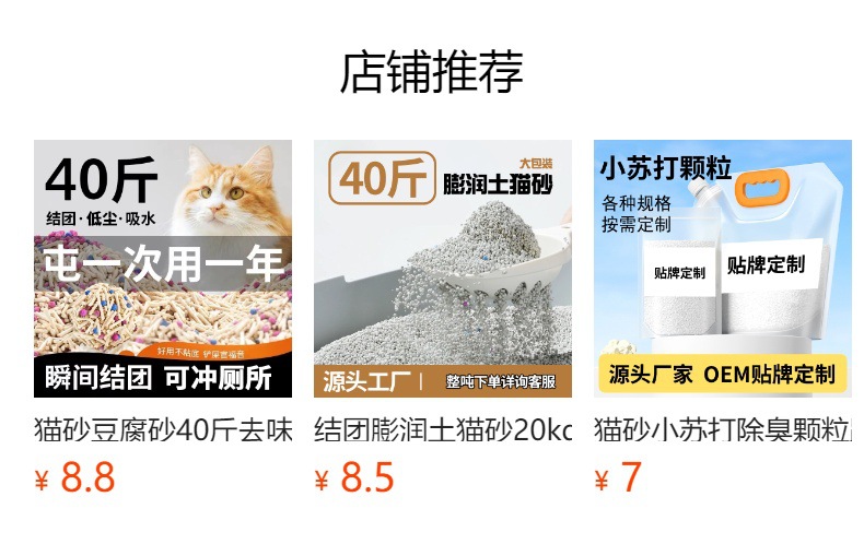 Personalizada arena de gato fabricación transfronteriza mezcla de tofu procesamiento de arena de gato personalizada tofu desodorización fábrica de baja fuente de polvo
