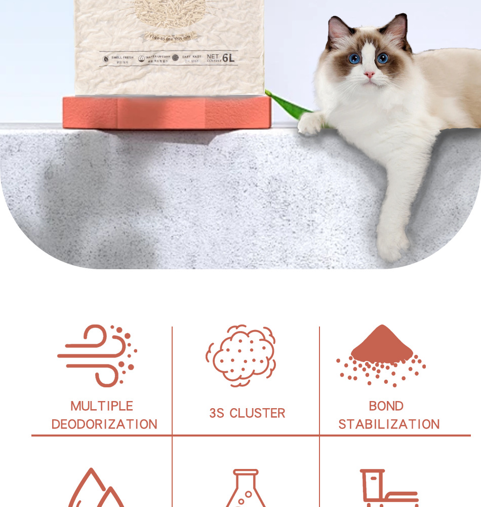 Arena de gato transfronteriza al por mayor planta vietnamita mezcla de tofu arena de gato 6L desodorizante desodorizante polvo bajo fábrica de comercio exterior