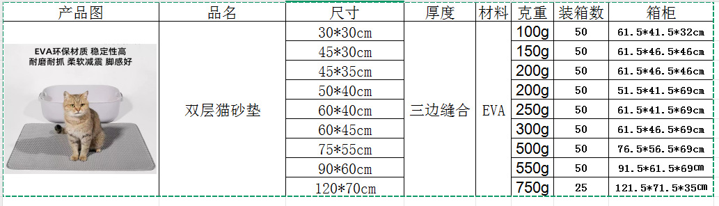 Cojín de arena de gato transfronterizo para evitar la salida de arena de gato, cojín de arena de doble capa de filtración super grande, cojín de control de arena mayorista