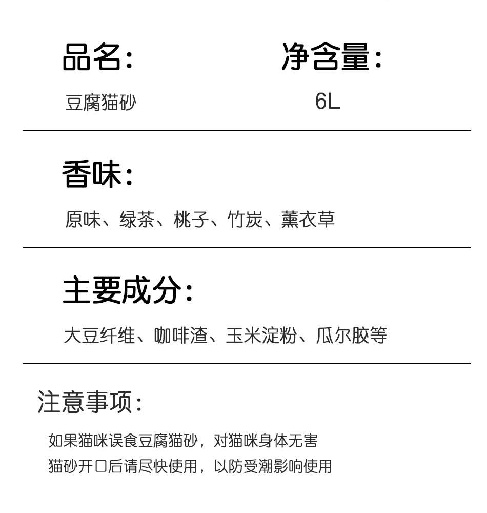 | Especificaciones | Té verde tofu puro arena para gatos 2kg |