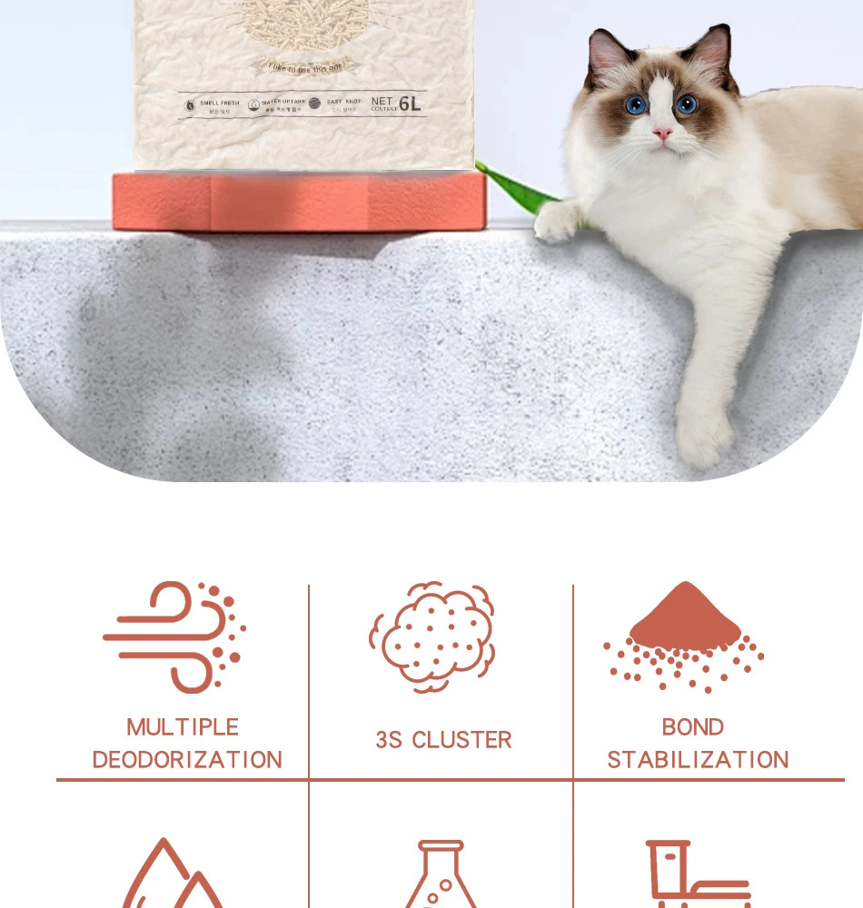 | Especificaciones | Sabor original de arena de gato de tofu |
