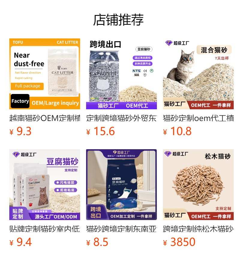 Tofu arena para gatos de alta calidad, tienda de mascotas de bajo grado, gato al por mayor, etiqueta de procesamiento OEM, fábrica de procesamiento personalizada de arena de tofu