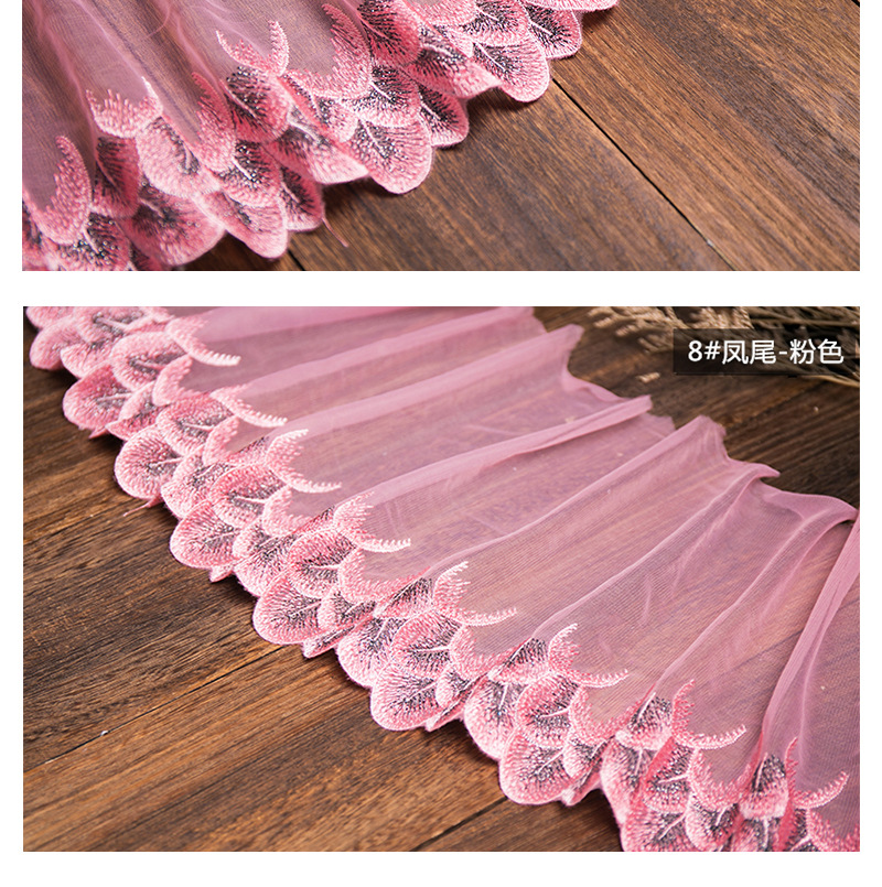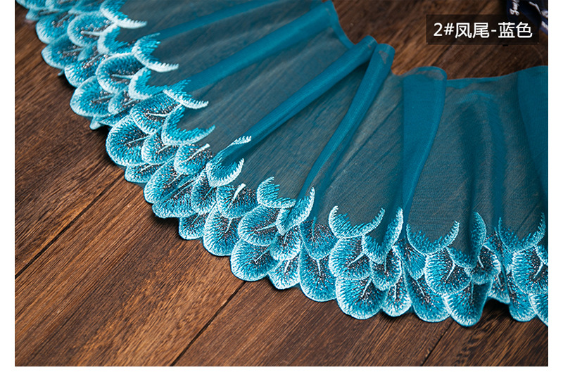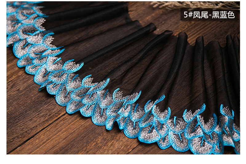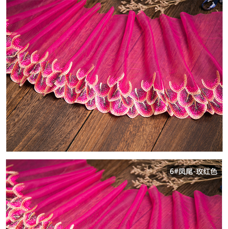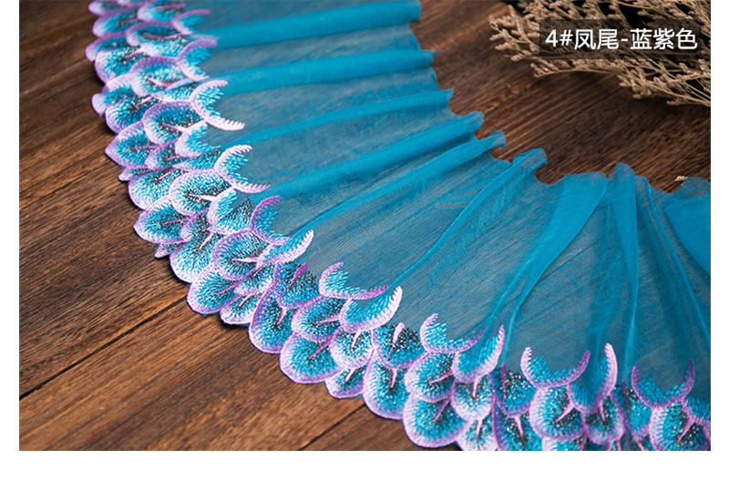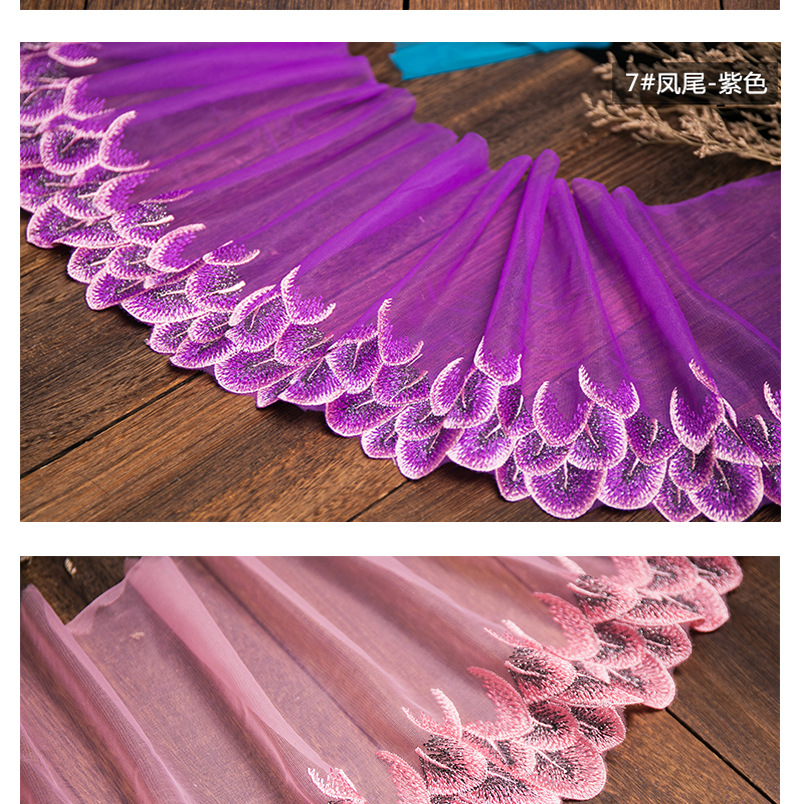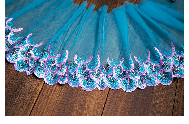 20cm de ancho de red de ancho de color bordado encaje suave plumas de pavo real ropa interior accesorios Barbie