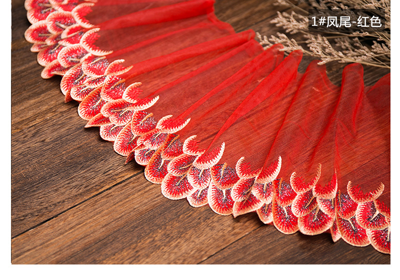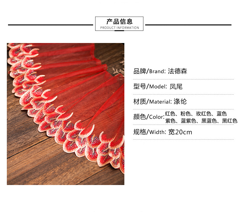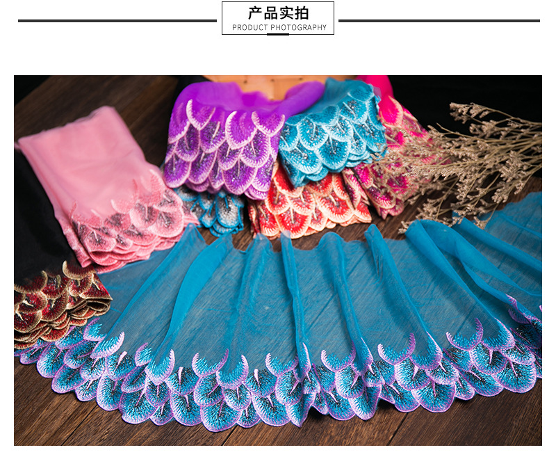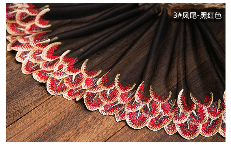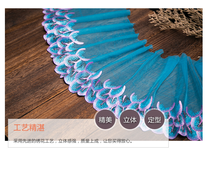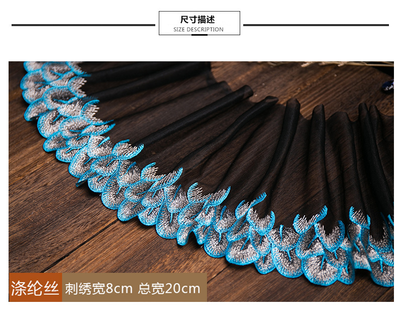 20cm de ancho de red de ancho de color bordado encaje suave plumas de pavo real ropa interior accesorios Barbie