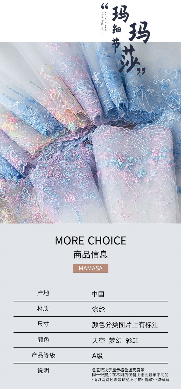 Alta calidad dopamina sueño bordado colorido hilo de malla encaje DIY mano lolita ropa tela accesorios para el cabello