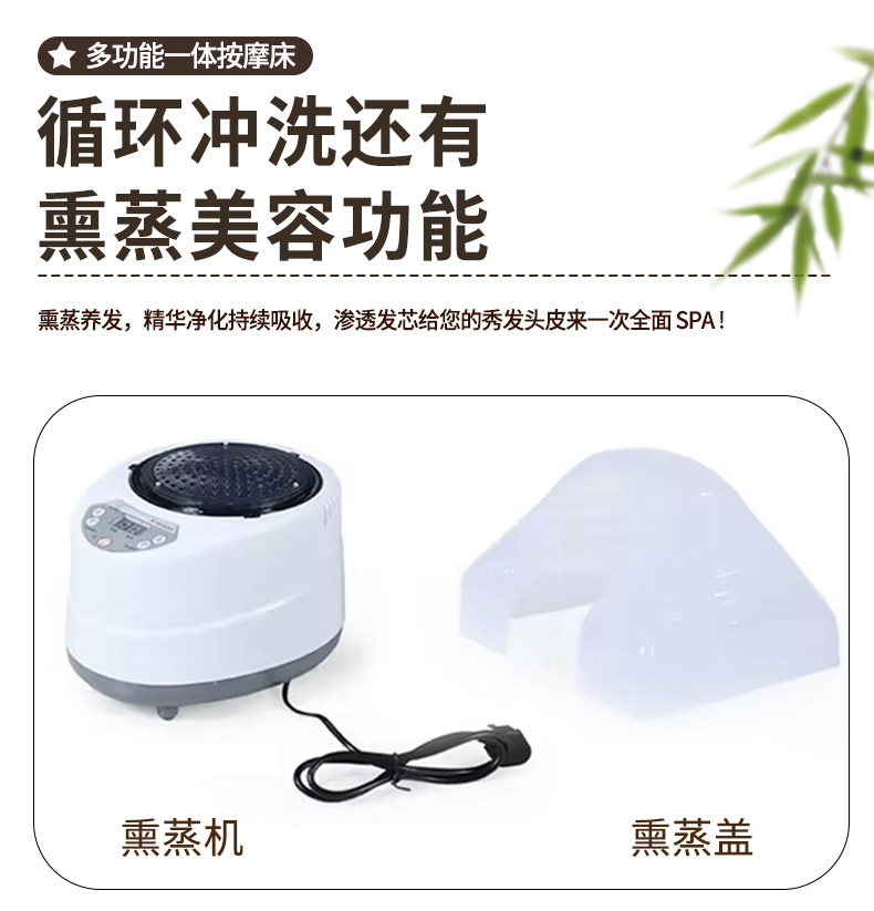 Hot sale masaje eléctrico lavado de cabello cama de tratamiento de cabello inteligente totalmente automática reclinada temperatura constante agua circulante fumigante conjunto de salud