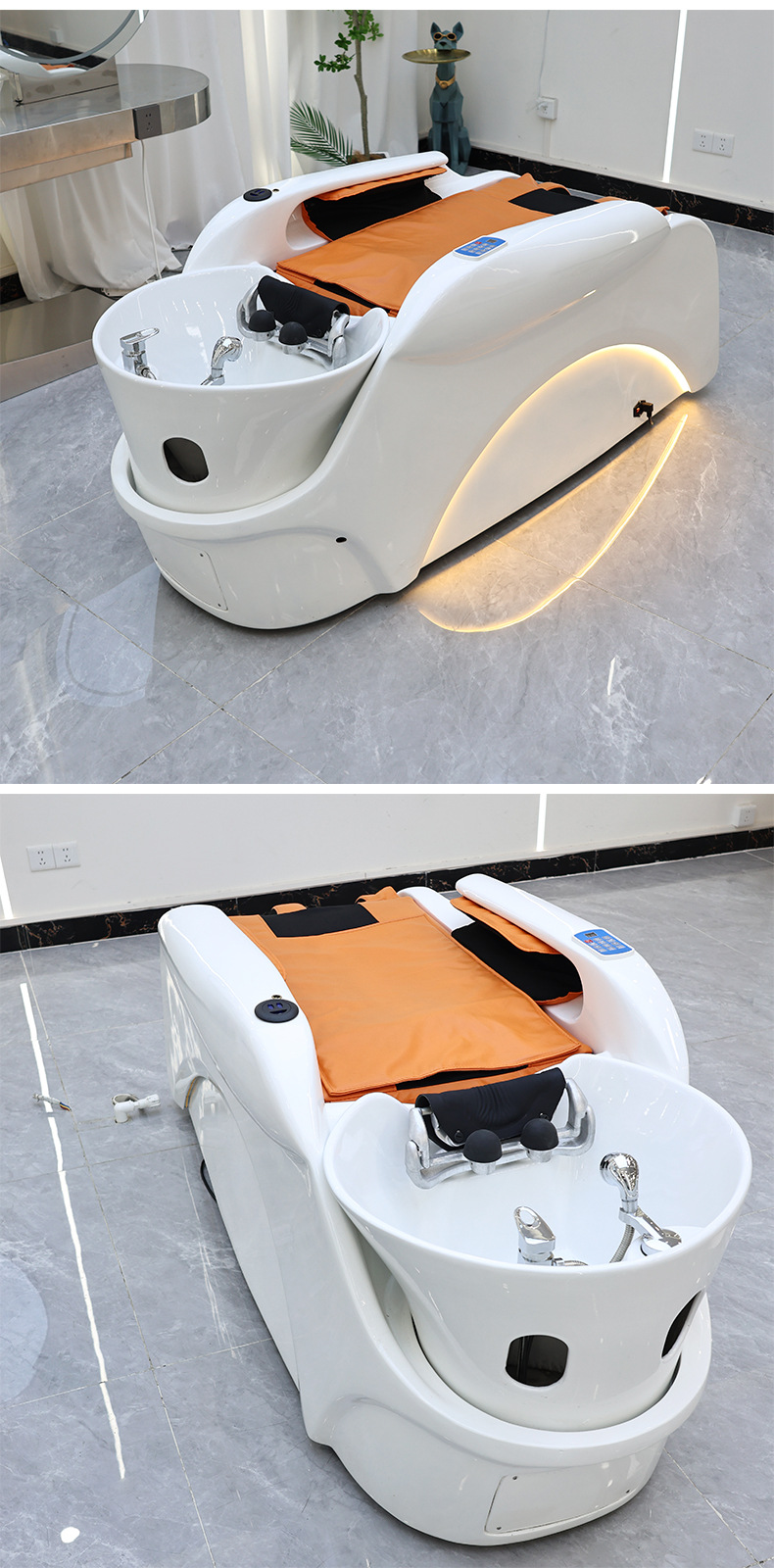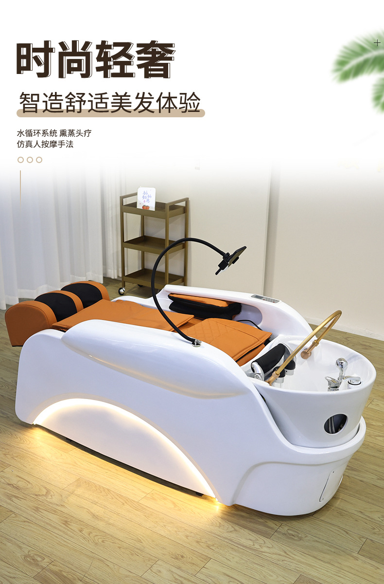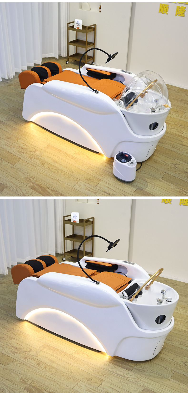 Comercio exterior venta caliente masaje eléctrico lavado de cabello cama de tratamiento de cabello inteligente totalmente automática cama de tratamiento de cabello tipo reclinación de temperatura constante agua circulación fumigante manga