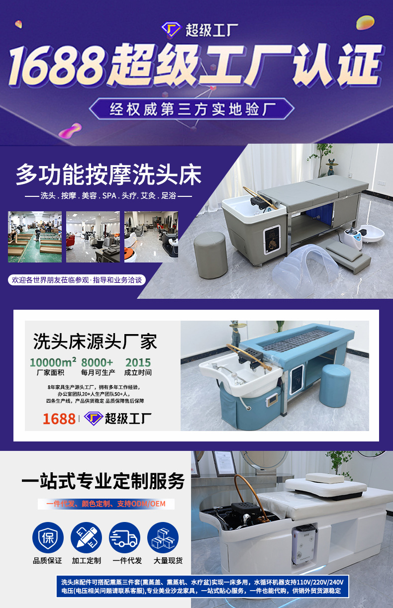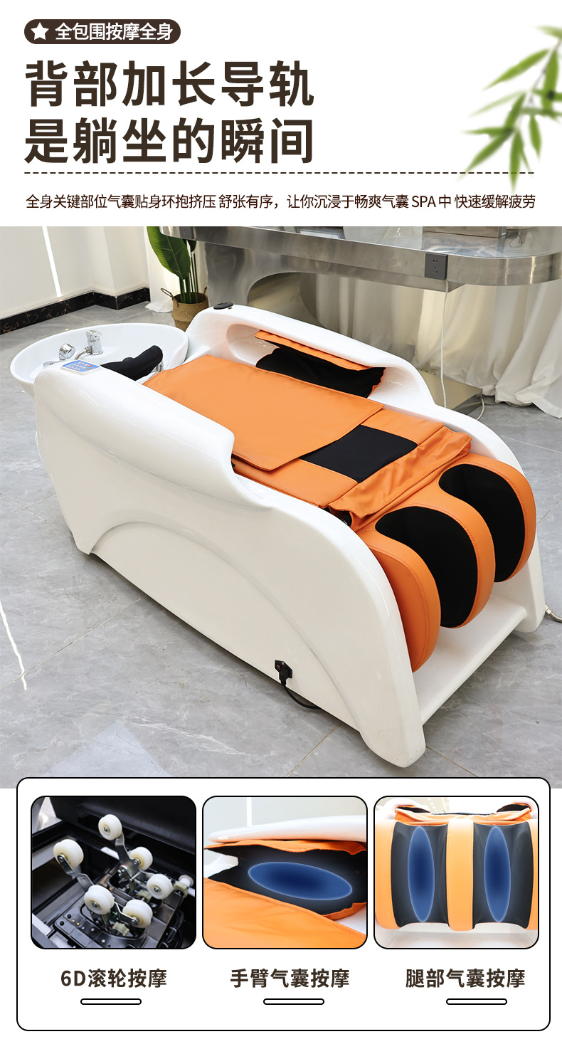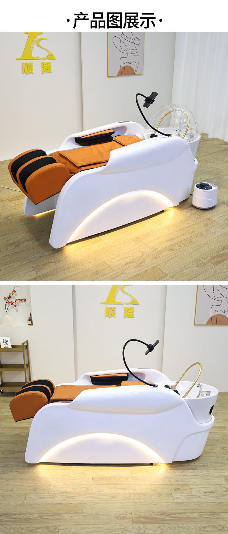 Comercio exterior venta caliente masaje eléctrico lavado de cabello cama de tratamiento de cabello inteligente totalmente automática cama de tratamiento de cabello tipo reclinación de temperatura constante agua circulación fumigante manga