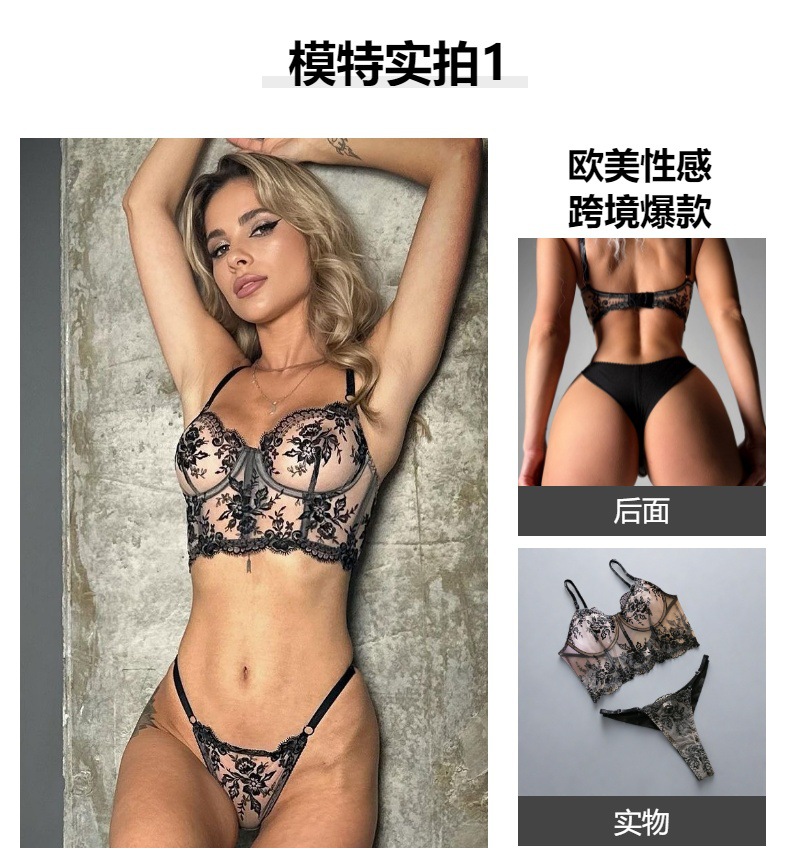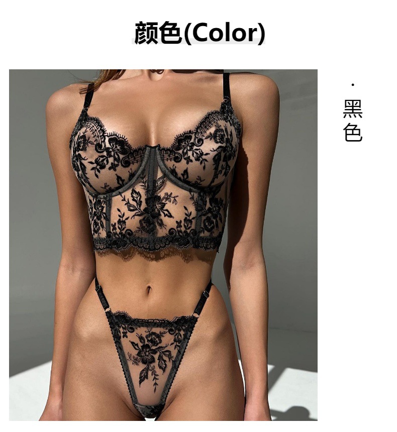Europa y los Estados Unidos transfronterizos explosivos damas bordadas de encaje sexy patrón de flores transparente anillo de acero conjunto de sujetador