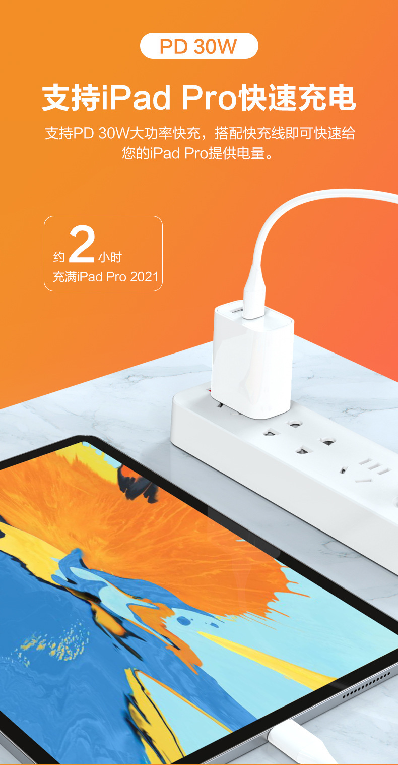 PD30W cargador USB + TYPE-C adaptador pd + qc3.0 cabeza de carga rápida de teléfono celular certificado CCC estándar medio