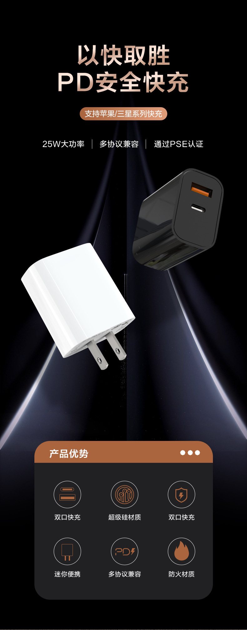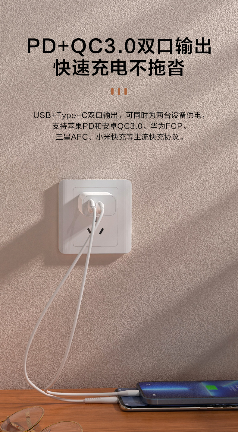 Personalizado PD25w diario cargador PSE certificado dual puerto QC3.0 teléfono móvil cabeza de carga rápida para cabeza de carga Samsung