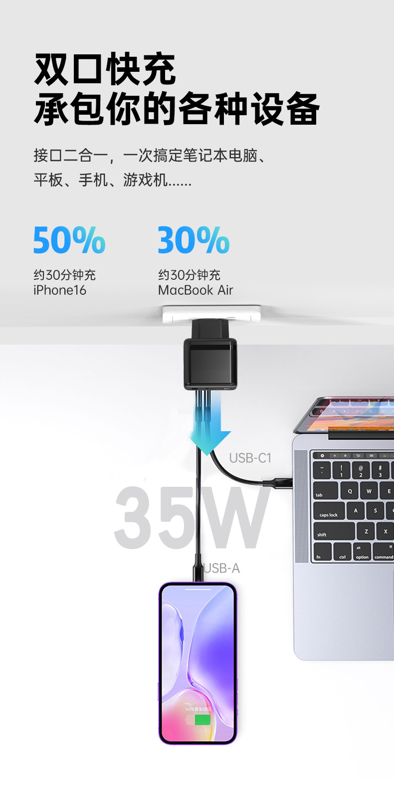 Cargador de teléfonos móviles transfronterizos PD35w, cabezal de carga de nitruro de gallio, certificación CE, protocolo completo personalizado