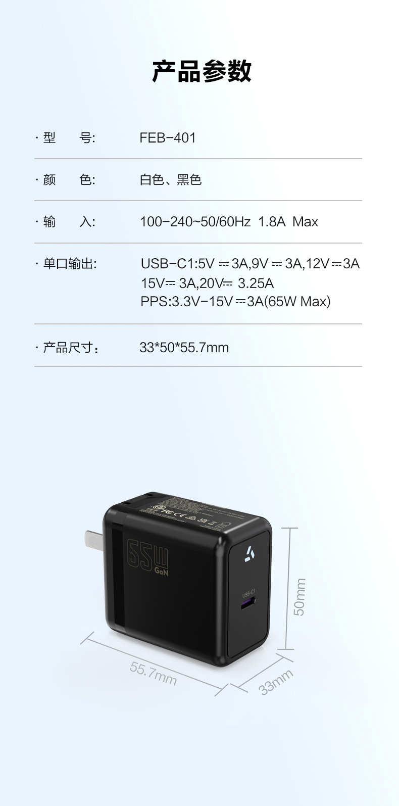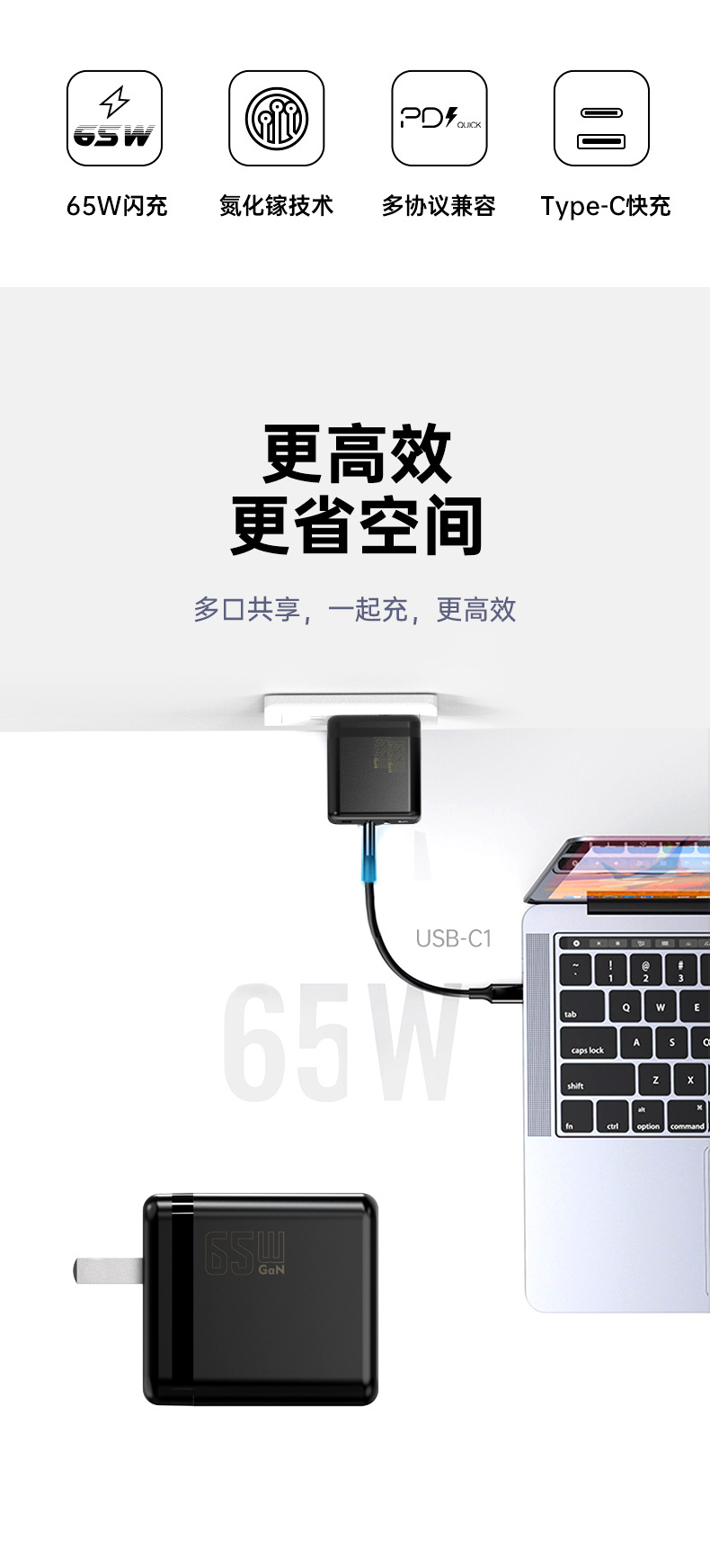 Cargador de GaN de 65W estándar para Samsung Apple Huawei un puerto único PD cabeza de carga rápida certificación 3C