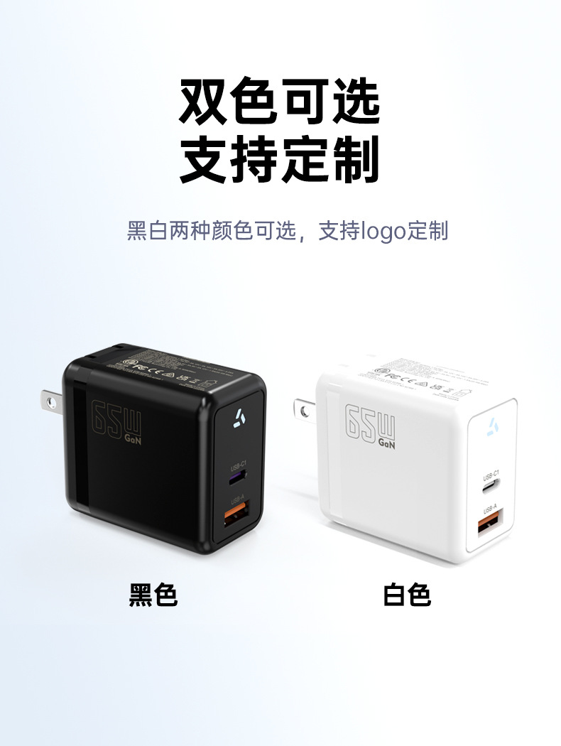 Cargador de doble puerto GaN65W estándar para adaptador de alimentación de teléfonos móviles de Apple ETL certificado PD carga rápida