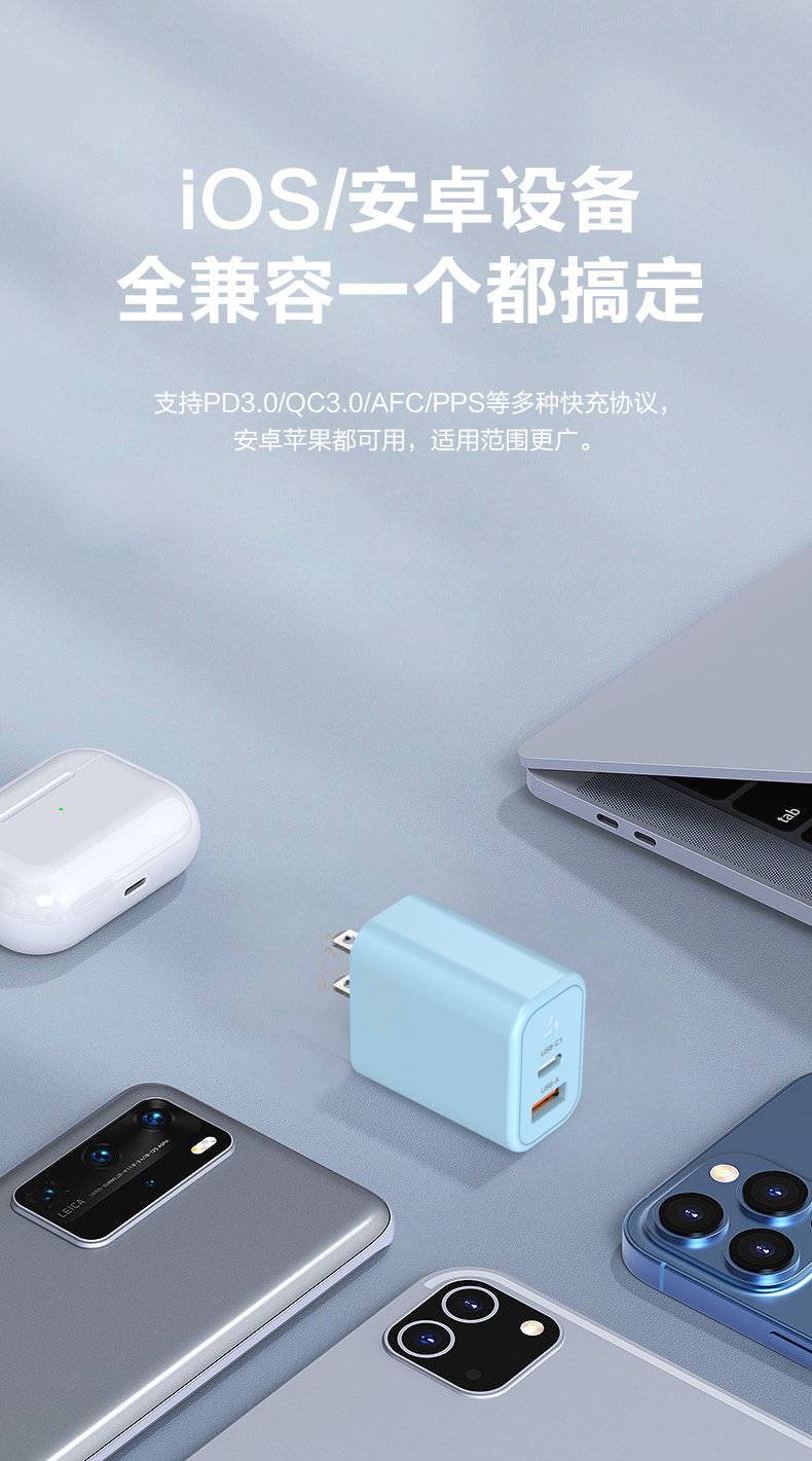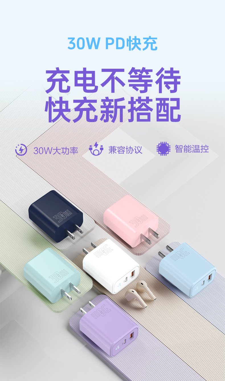 PD30W GaN mini GaN multicolor cabeza de carga rápida PD30W estándar de EE.UU. para muchos equipos