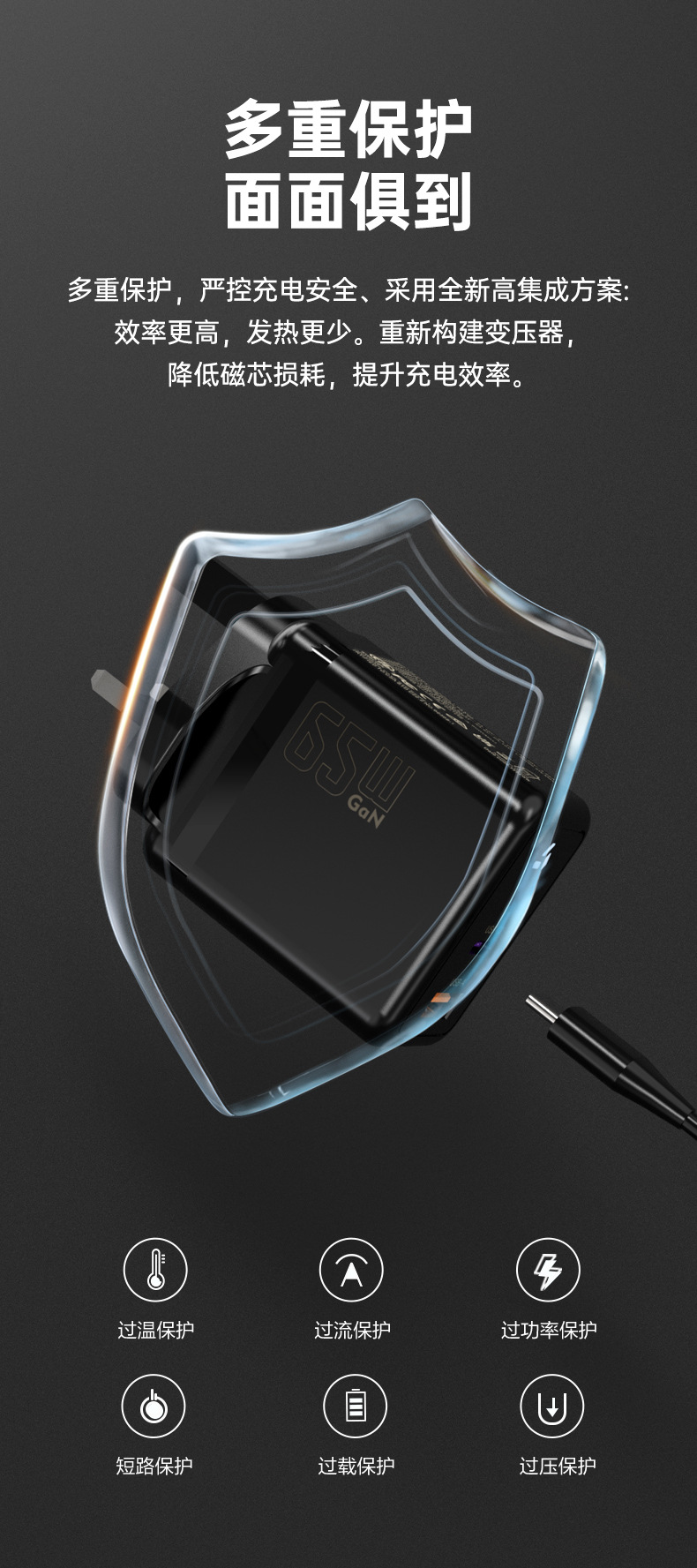 65W Cargador de computadora para teléfono móvil con nitruro de galio Potencia total 65W Enchufe de carga de teléfono móvil estándar británico de múltiples puertos de alta potencia