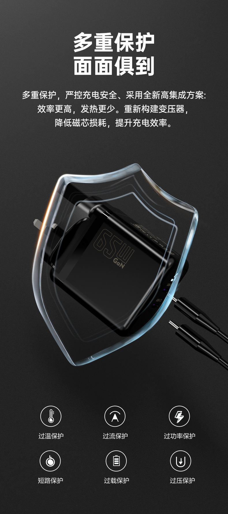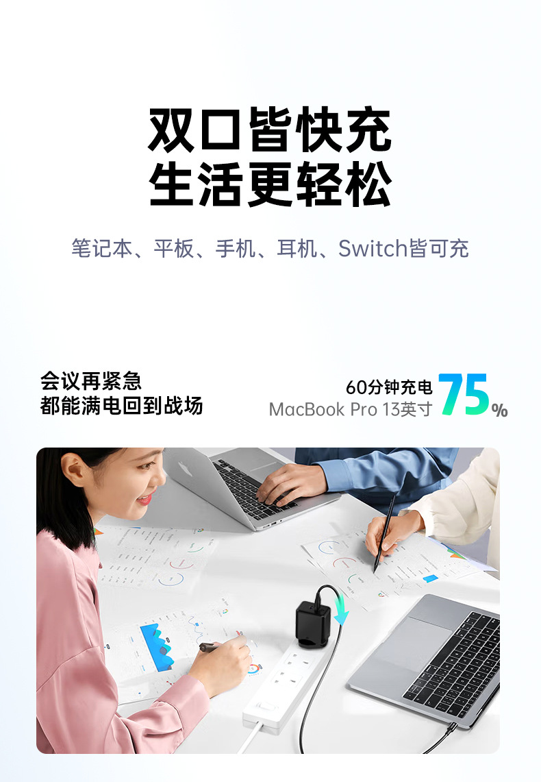 UKCA Certificado Cargador de 65W para Apple Series Notebook 2C Dual Port GaN PD Head Cargador