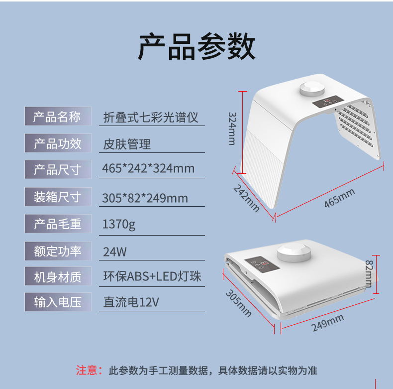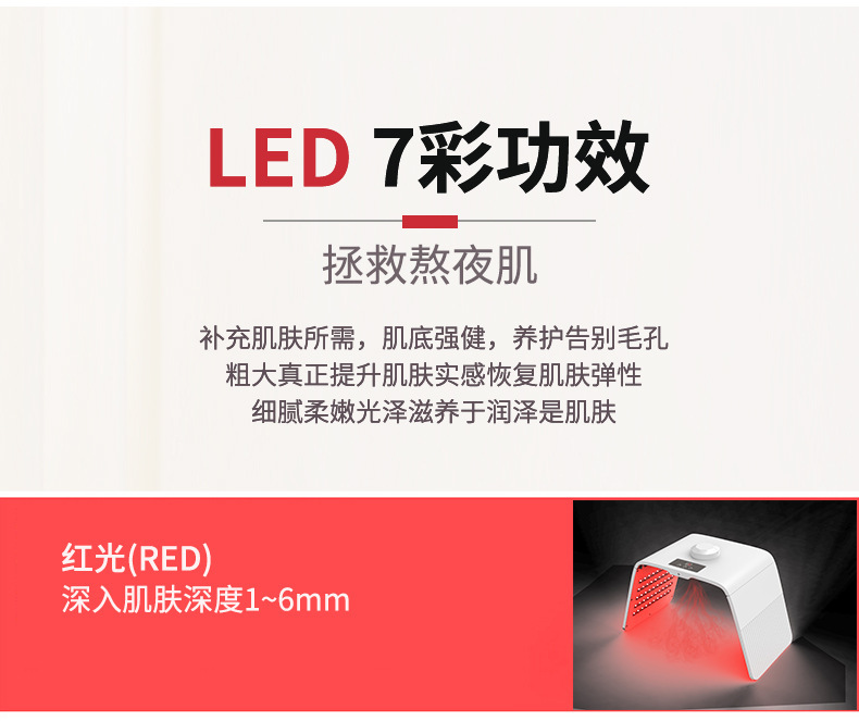 Espectrómetro transfronterizo LED7 pulverización de luz de color dispositivo de rejuvenecimiento fotónico plegable acné doméstico elevación de luz roja electrónica