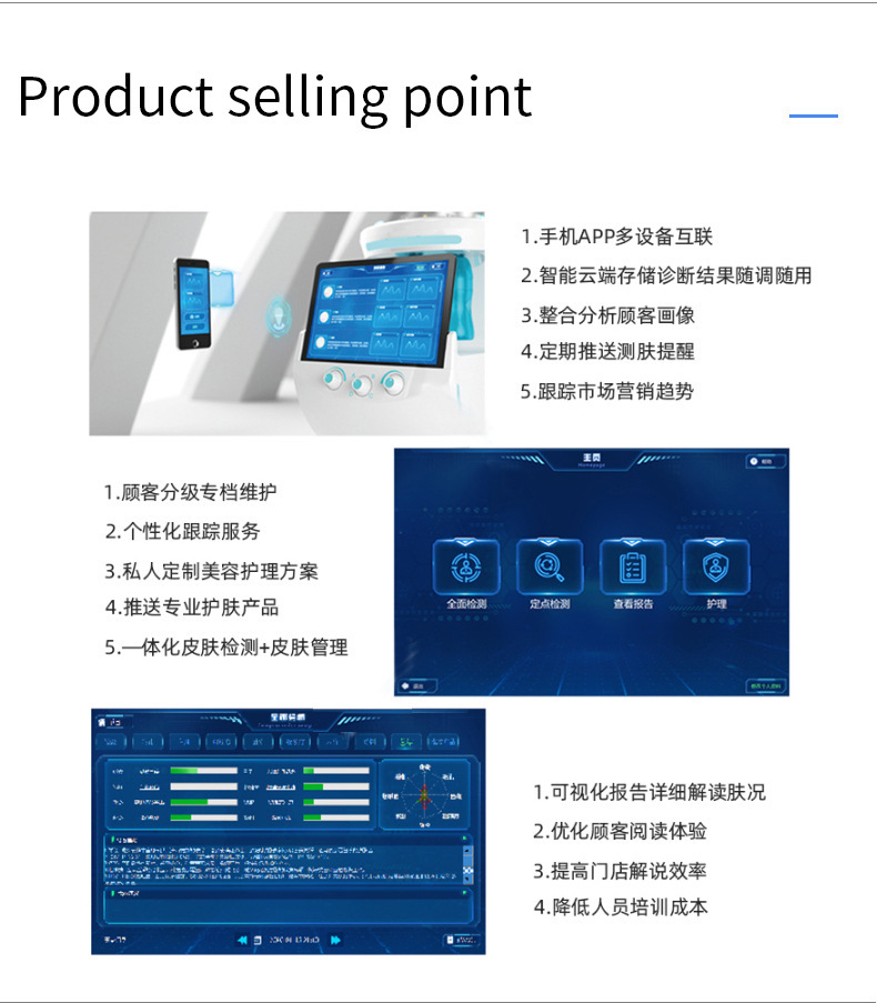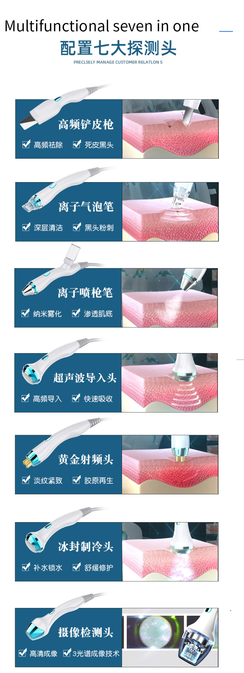 Salón de belleza multifuncional de gestión de la piel de plasma instrumento de belleza inteligente azul de hielo detector de burbujas de hidrógeno y oxígeno