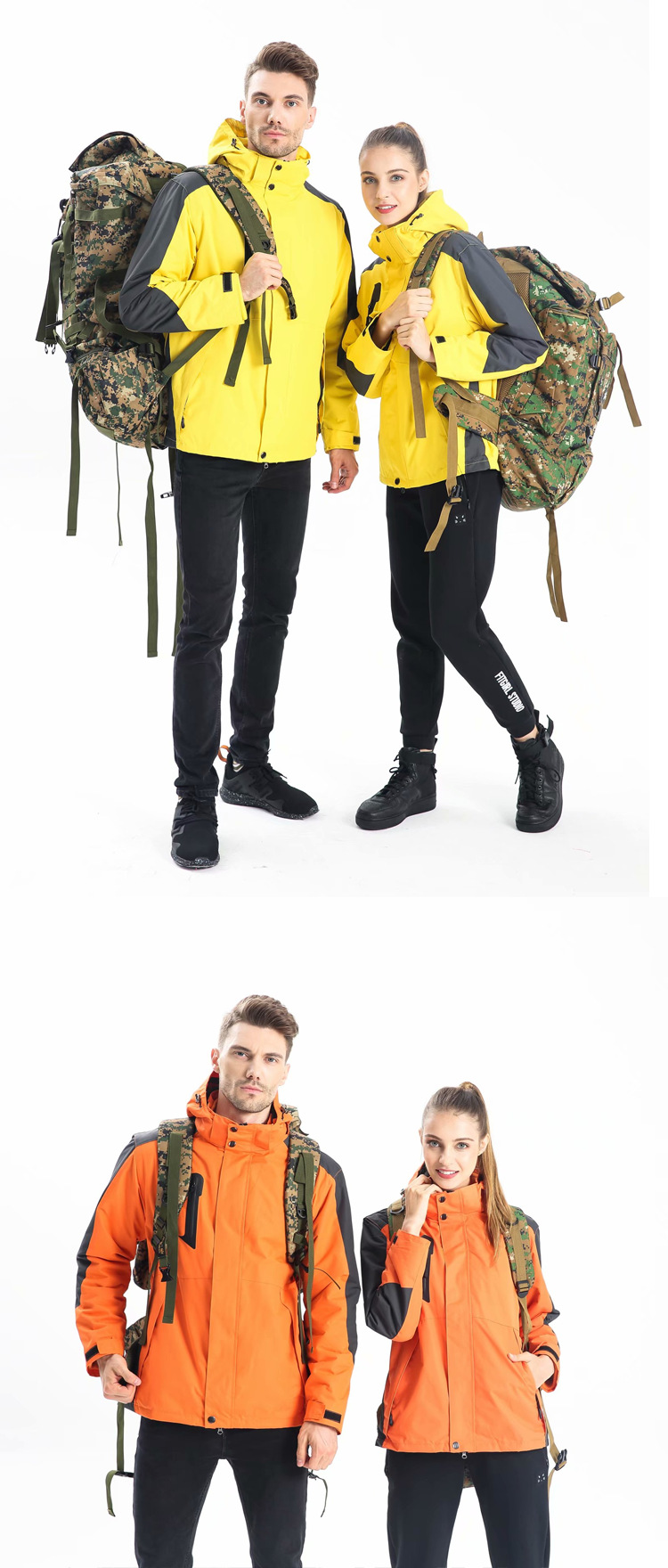 Logotipo de impresión de ropa de trabajo para hombres y mujeres otoño y invierno engrosado 3 en 1 revestimiento desmontable chaqueta exterior