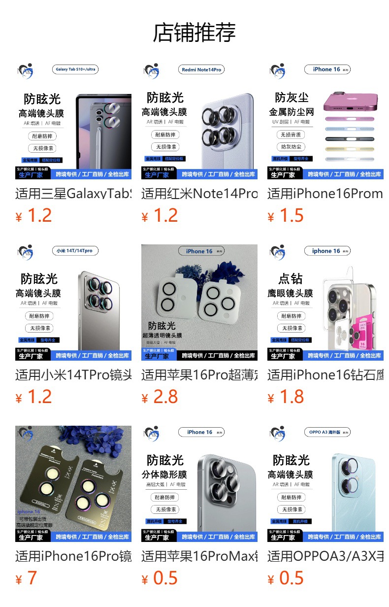 | Color | Marco de metal esmeriado - negro, marco de metal esmeriado - gris, marco de metal esmeriado - estrella plateada, marco de metal esmeriado - rosa, marco de metal esmeriado - azul cielo, marco de metal esmeriado - púrpura, marco de metal esmeriado - amarillo dorado, pegatina de lente de vidrio separada, ojo de halcón de metal envasado por separado (película de lente + embalaje + paquete de limpieza) |