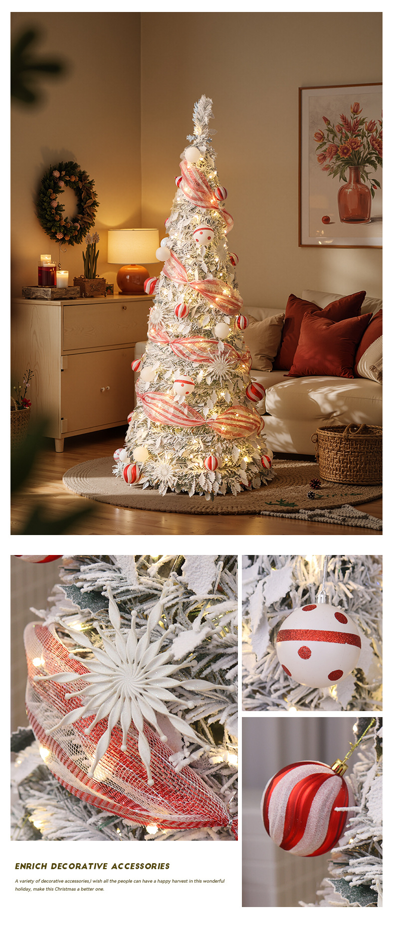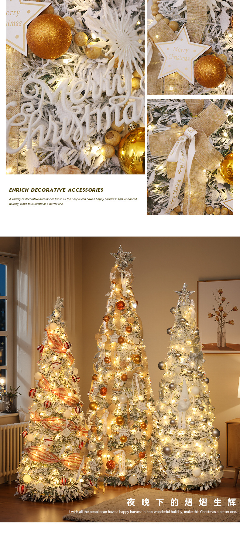 Transfronterizos nuevos sin instalación plegable luminoso paquete de árbol de Navidad blanco retráctil decoración de Navidad decoración