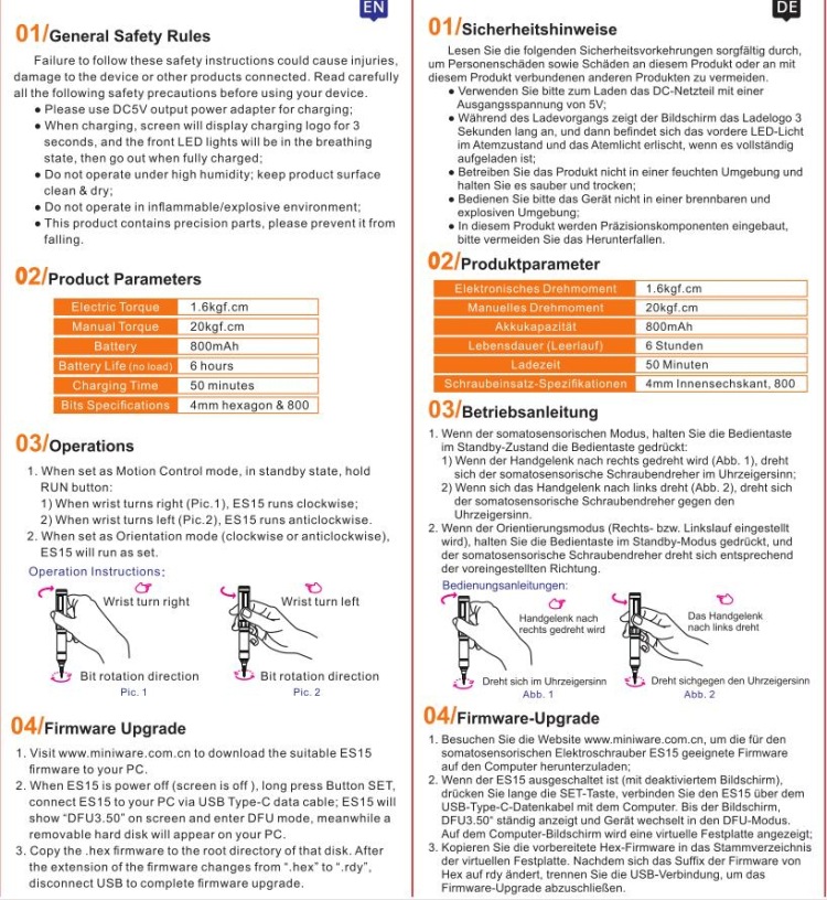 中文标题:MINIWARE ES15 电动螺丝刀维修工具
