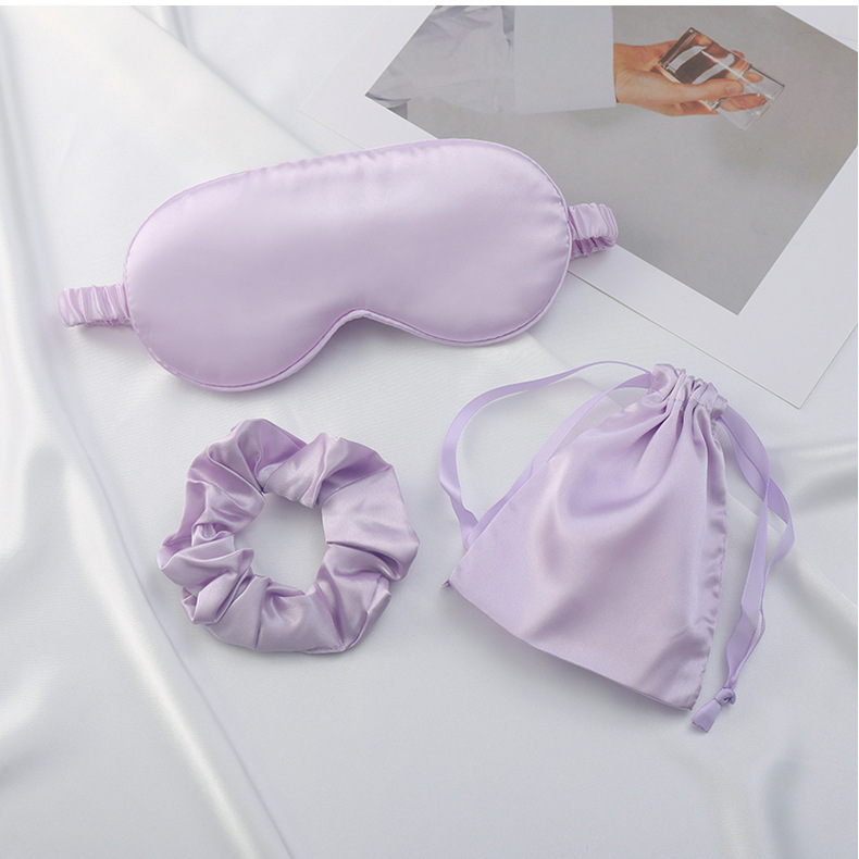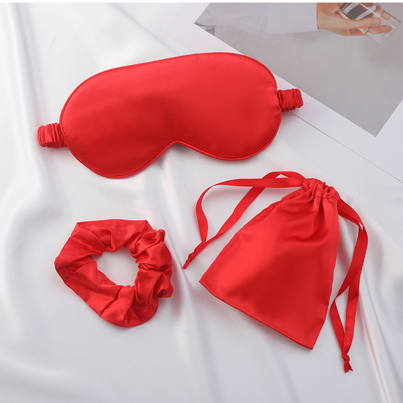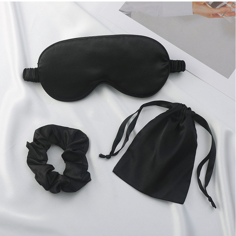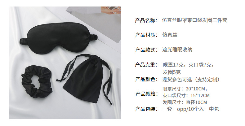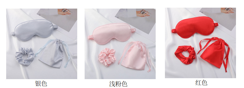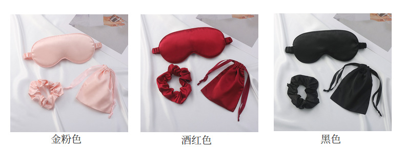 Simulación de seda para los ojos de tres piezas de anillo de cabello, bolsillo de banda de cabello, regalo de mano, almacenamiento portátil al aire libre, protección de ojos para dormir.