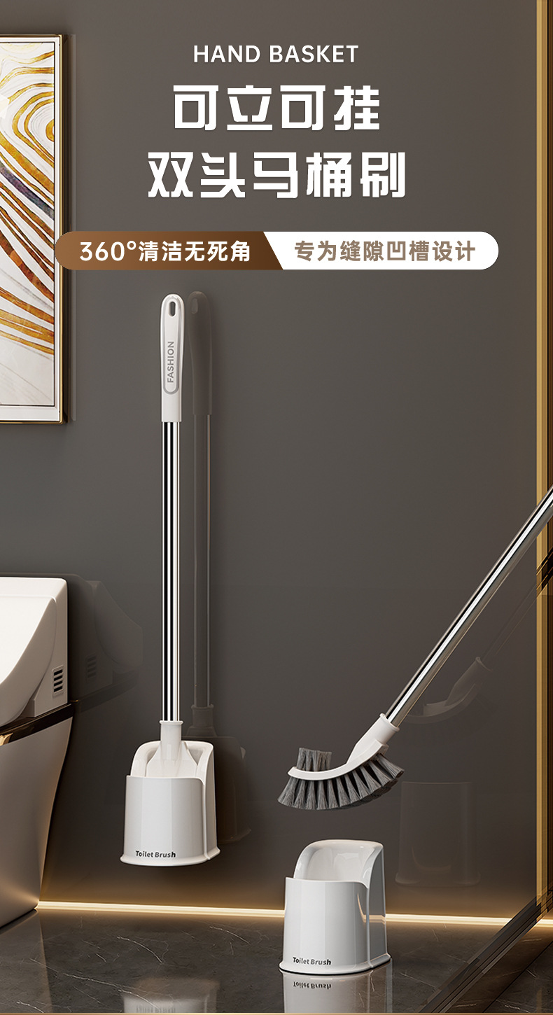 cepillo de inodoro de doble cabeza con base de cepillo de mango largo para casa cepillo de limpieza multifuncional de plástico para inodoro colgado en la pared