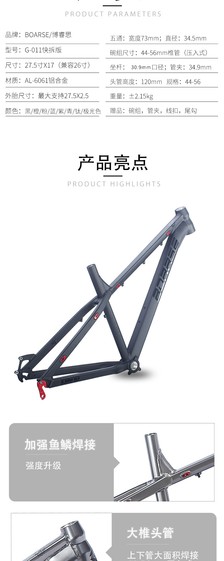 BOARSE 27.5 pulgadas AM de aluminio de cola dura marco de bicicleta de montaña 26 pulgadas de montaña marco duro desmontaje rápido