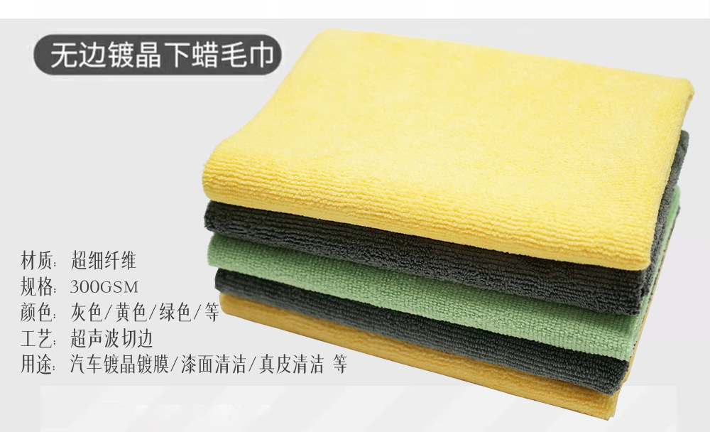Toalla de coche de corte en caliente Toalla de pulido Toalla chapada de cristal Tela encerada 300gsm Toalla de lavado de coche Toalla cuadrada de microfibra