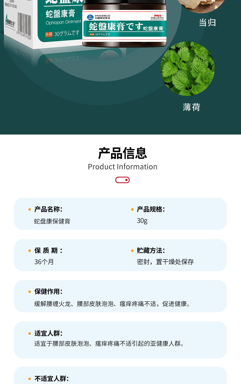 Serpiente placa cuidado de la salud crema cintura-bobinado dragón de fuego serpiente cintura-bobinado piel burbuja picazón ungüento anti-picazón crema fabricante en stock Venta caliente
