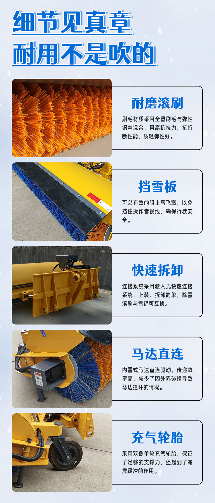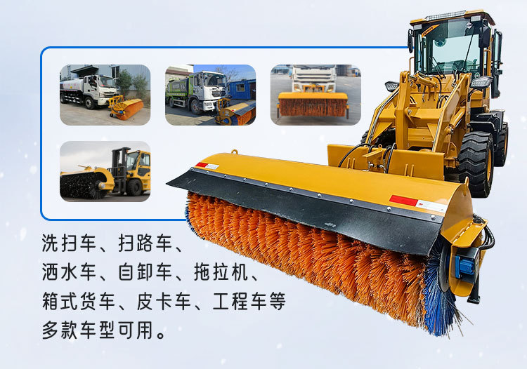 Cepillo rodante de remoción de nieve montado en automóviles para carreteras sanitarias municipales barridora de nieve cargador de invierno grande cepillo rodante de remoción de nieve